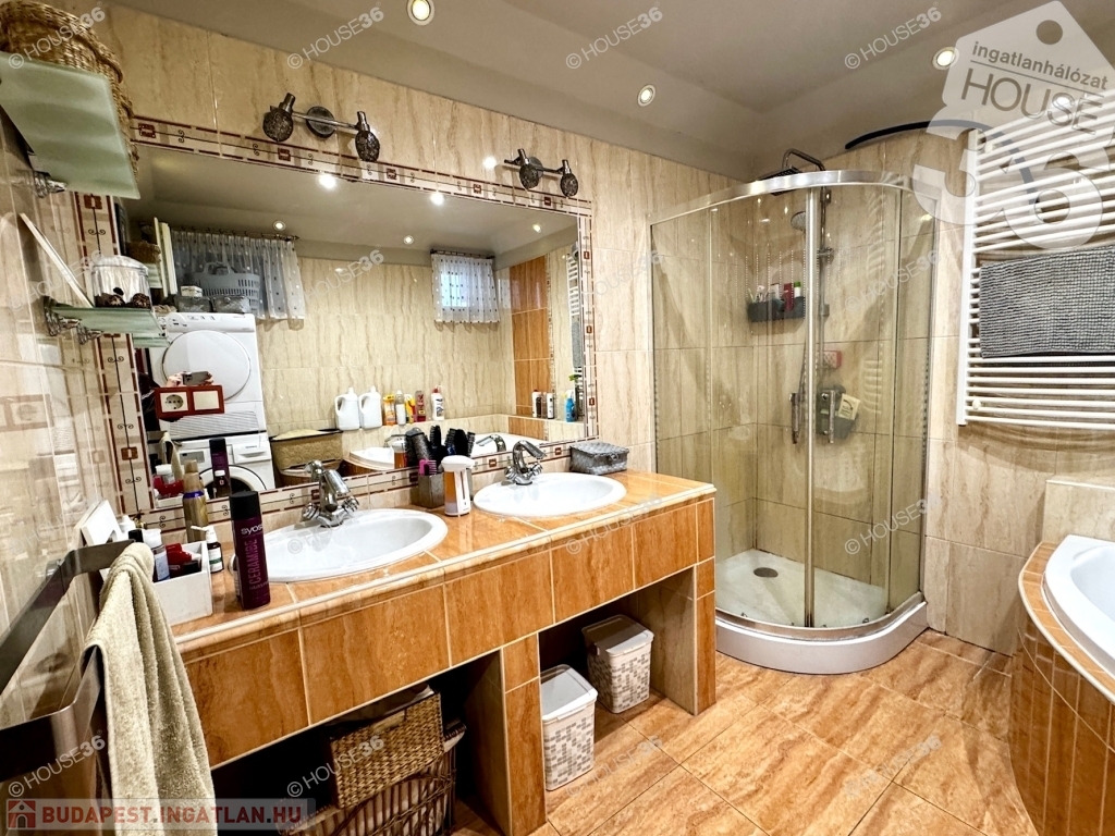 Extrák: 2 terasz (3 m2 és 12 m2), garázs elektromos kapuval, fűthető + udvari beálló