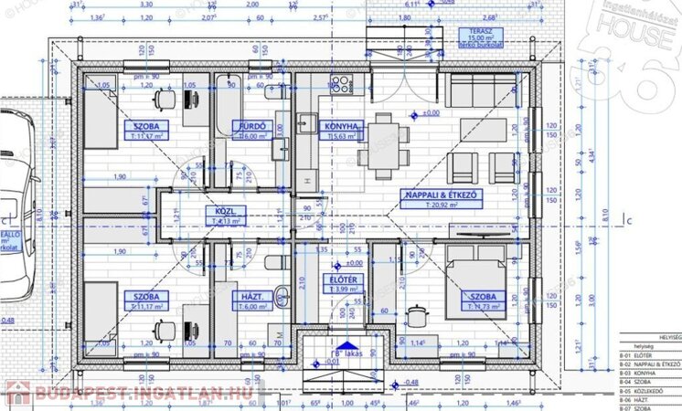 - nappali + 3 szoba