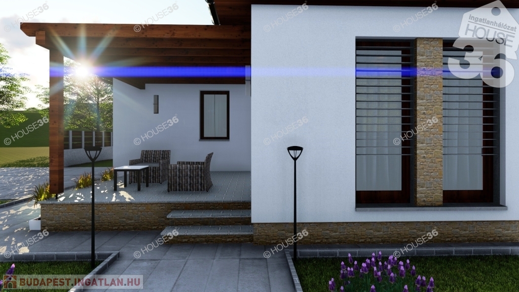 Nappali + 2 szoba, fürdő, és carportot is tartalmaz, nettó 90 m2.