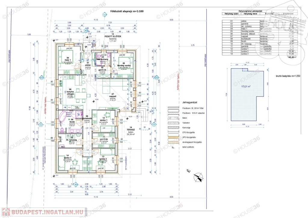 - nettó 140,48 m2 lakóház, 5 szoba+nappali+gardrób+2 fürdőszoba