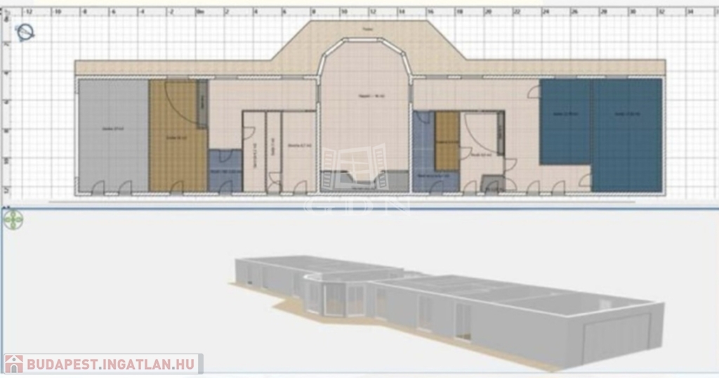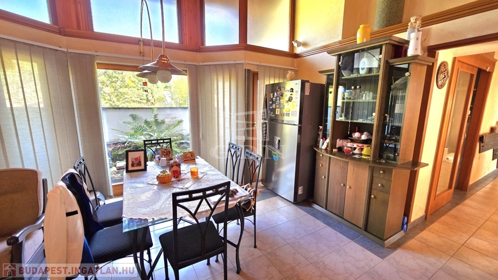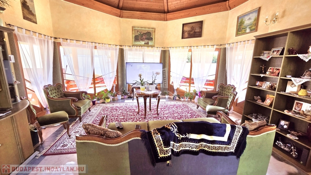 Az aszfaltozott utcában található 1153 nm összközműves területre a tulajdonos egy bruttó 350 nm házat tervezett, 3 szobával, konyhával, két fürdőszobával, szaunával, külön WC-vel és gardróbbal. Hatalmas, 50 nm nappalival, ahonnan panorámás kilátás nyílik az egész udvarra és hátul a télikertre.