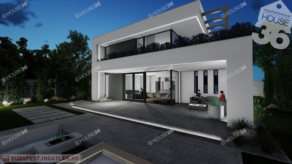 Az összközműves, betonos utcában található 910 m2-es telekre egy 126 m2-es prémium minőségű 2 szintes házat terveztek.