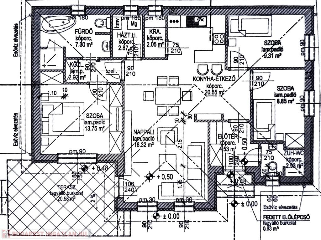 Kecskemét-Kadafalva új építésű családi házas övezetében, aszfaltos utcában 711 nm telken, újszerű, 94 nm lakóterű nappali+3 szobás modern családi ház eladó. Az ingatlan 2018-ban tégla falazattal, 30 cm födém, 15 cm homlokzati szigeteléssel, kiváló esztétikai és műszaki tartalommal épült. Élhető terek, praktikus elosztás, amerikai konyhás nappali, spájz, háztartási helyiség, dupla wc és fürdőszoba, 20 nm fedett terasz teszi még komfortosabbá a lakók életét.