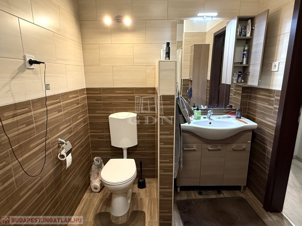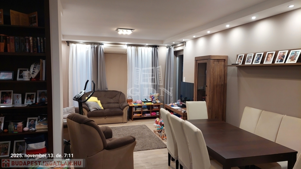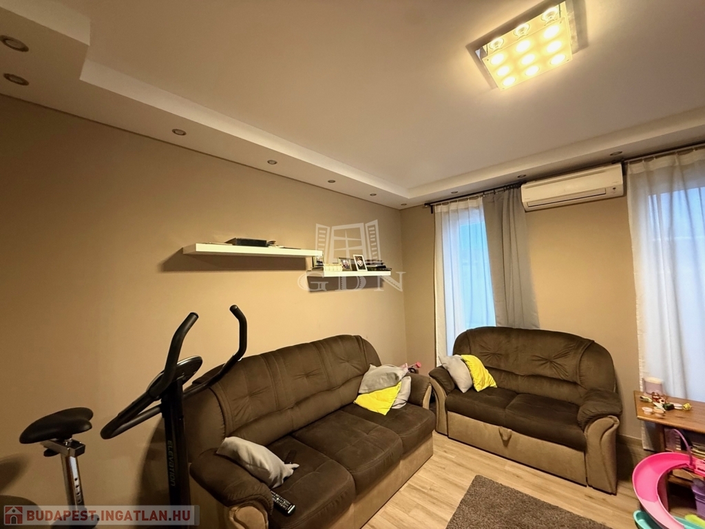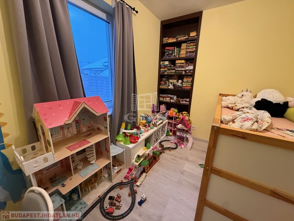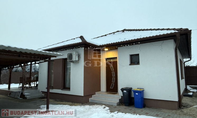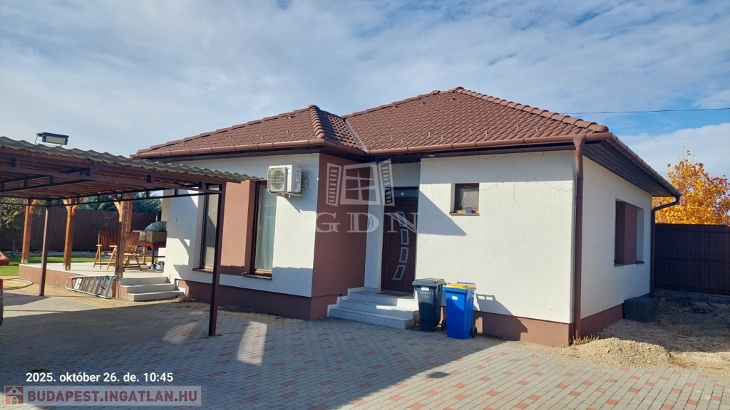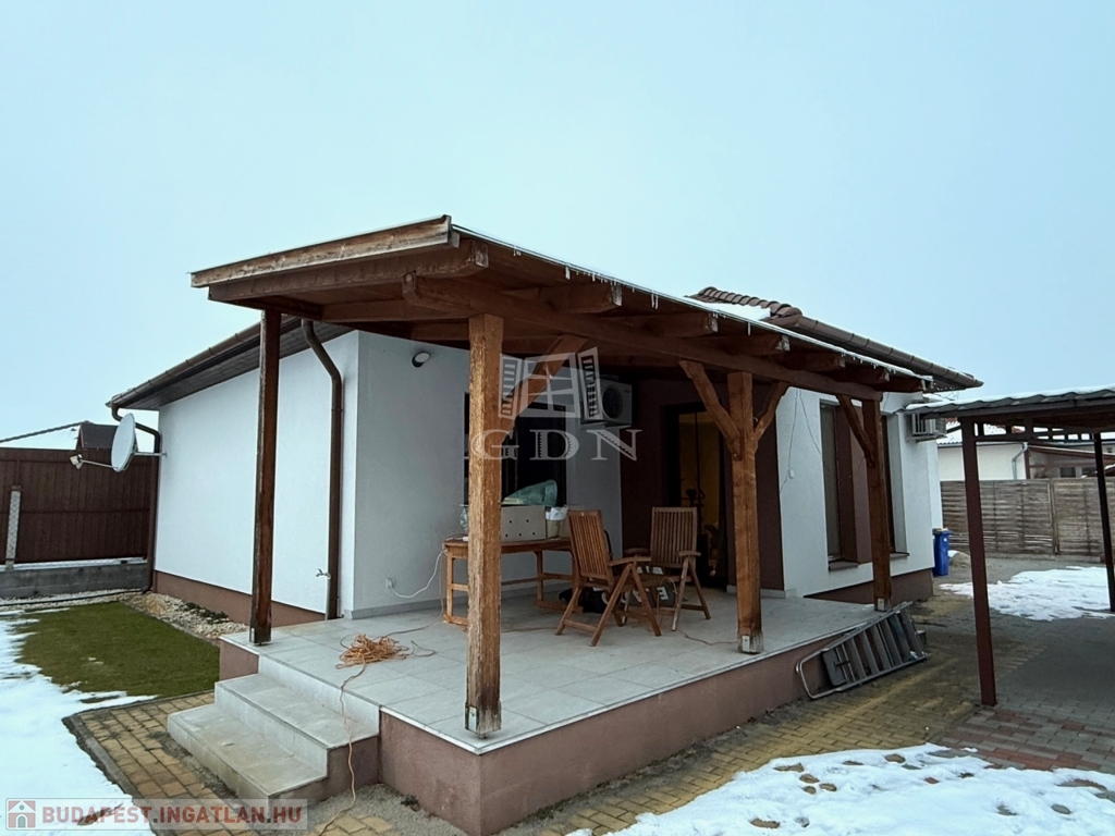 A kert újonnan füvesített, öntözőberendezéssel ellátott, mely fúrt kútról is üzemeltethető. A telken található még fedett gépkocsibeálló, kerti tároló, kis gyermekjátszótér. Az ingatlan tehermentes, 2-3 hónap múlva birtokbavehető.