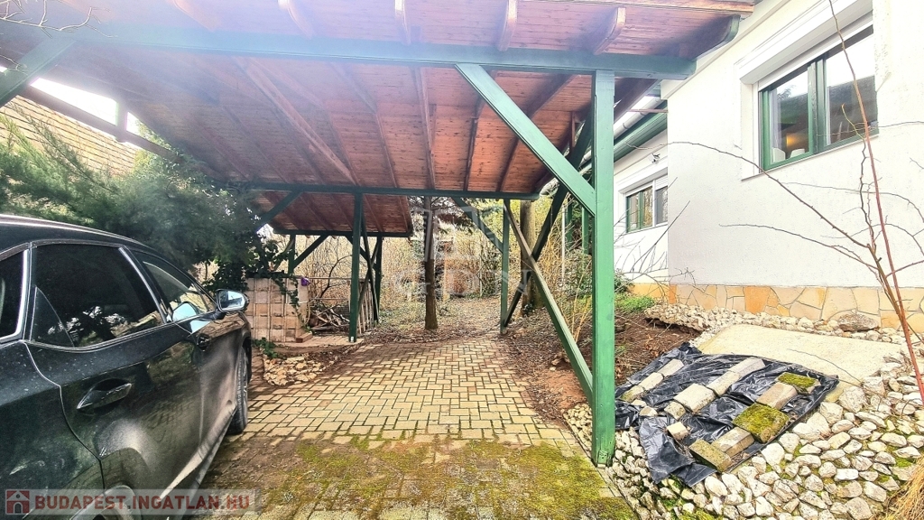 A 800 nm-es gondozott, vadregényes ,intim telken grillező terasz és e fedett kocsibeálló lett kialakítva.