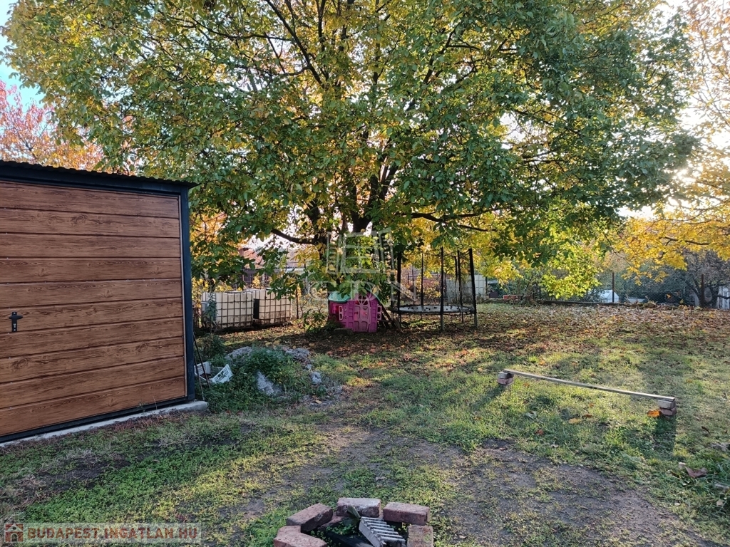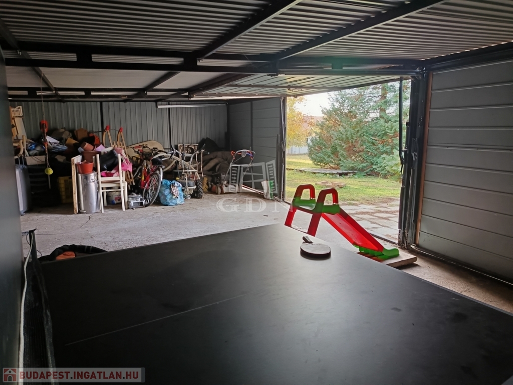 A kertben helyt kapott egy betonalappal rendelkező 3 állásos lemezgarázs is, ahonnan a pince megközelíthető 810 nm nagyságú).
