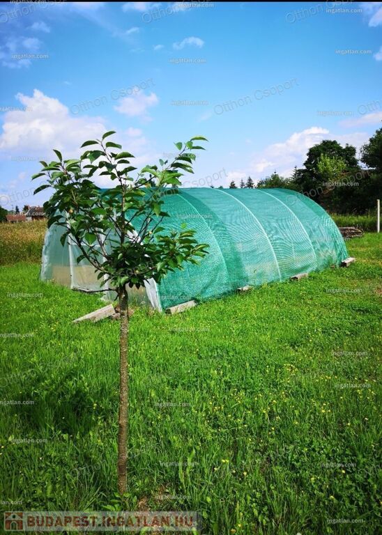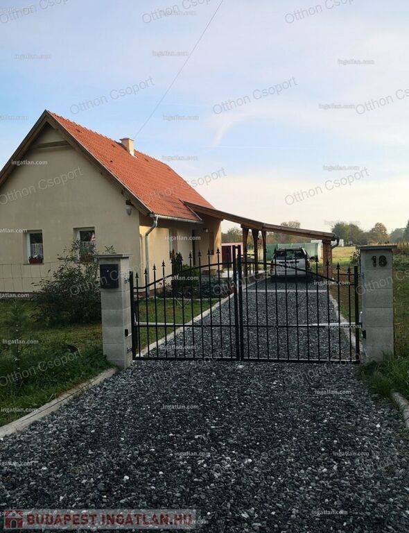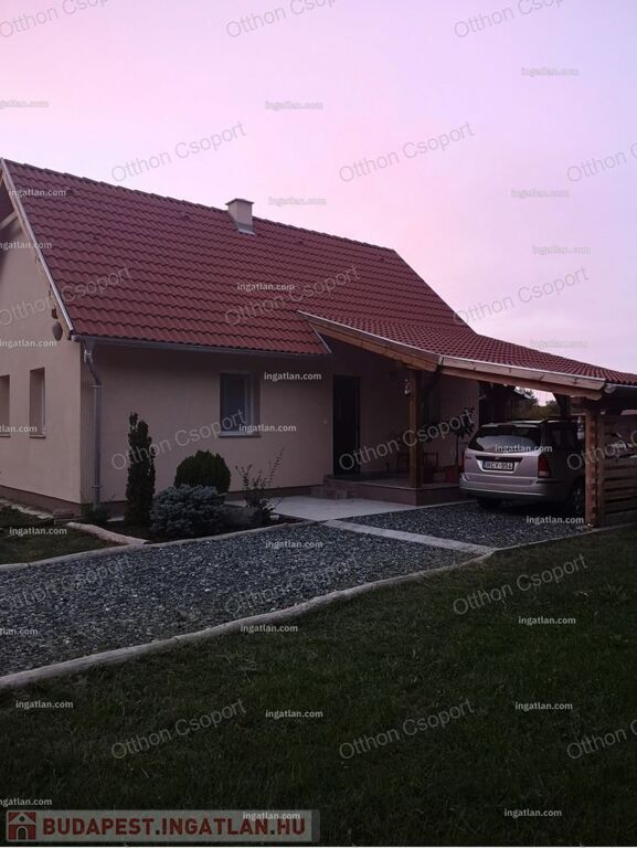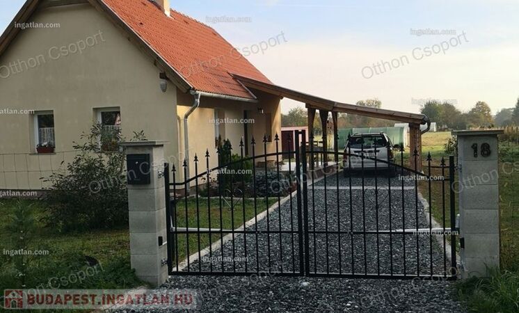 Az 1050 m2-es ingatlan területére egy távirányítóval vezérelt elektromos kapu segítségével lehet bejutni. A telken elhelyezkedő újszerű állapotú, ~ 47 m2 hasznos alapterületű ház egy közös légterű konyha + étkező + nappali helyiséggel, továbbá egy szobával, egy közlekedővel és egy fürdőszoba + wc-vel rendelkezik. Az épülethez tartozik még egy fedett terasz, egy szintén fedett kocsibeálló, egy fatároló és egy tárolóhelyiség, itt kaptak helyet a fűtés és a vízellátás berendezései is. A fűtést egy vízteres kandallókazán biztosítja radiátoros hőleadással. A falazatok téglából, a szigetelés kőzetgyapotból, a tetőfedés pedig Terran betoncserépből készült. A telken található még egy lemezgarázs és egy 6x4,5 m-es fóliasátor magaságyásokkal.