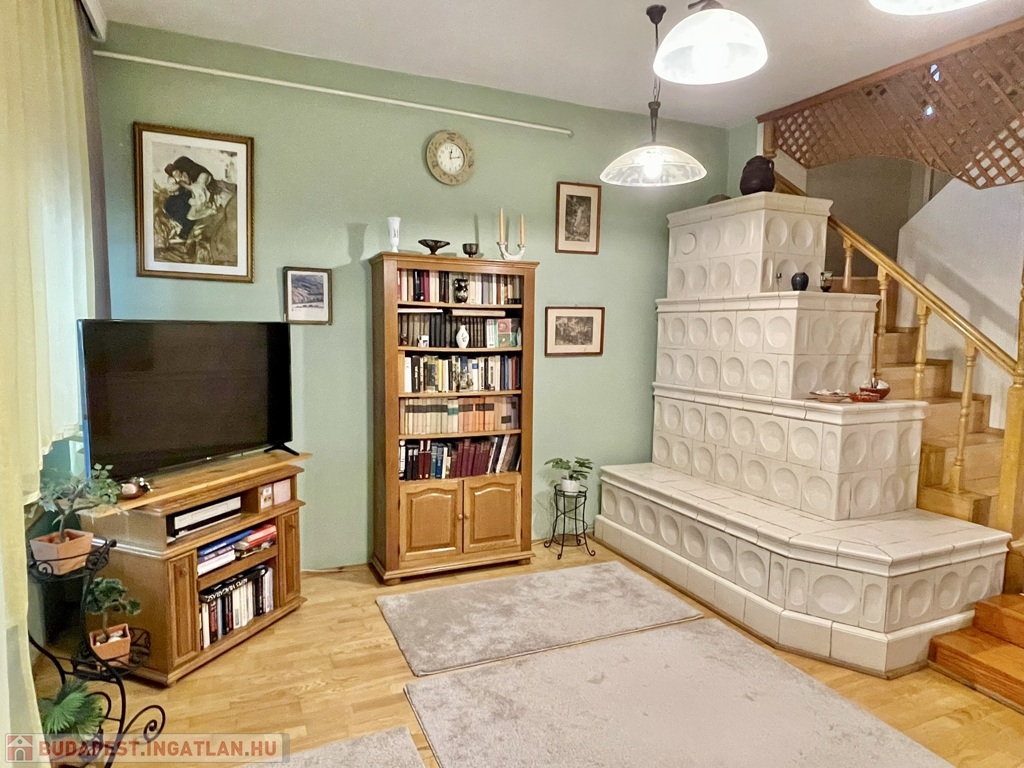fűtés: gázkazán + hangulatos cserépkályha a földszinten