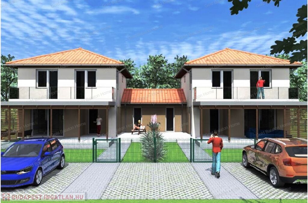 Kétszintes nívós IKERHÁZAK rendezett udvarral, a Hévízi-tótól 3 500 méterre, a Balatontól 4 500 méterre.