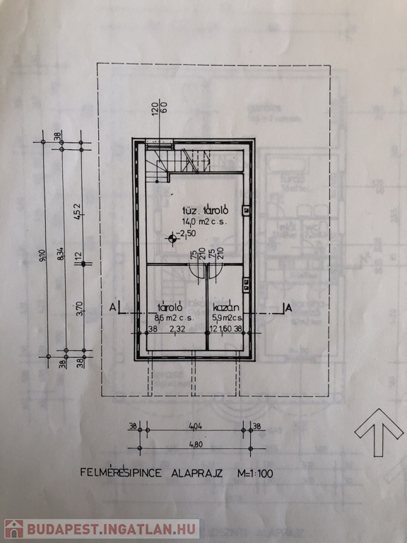 • Pince (42 m²): Tárolóhelyiségek, gépészet.