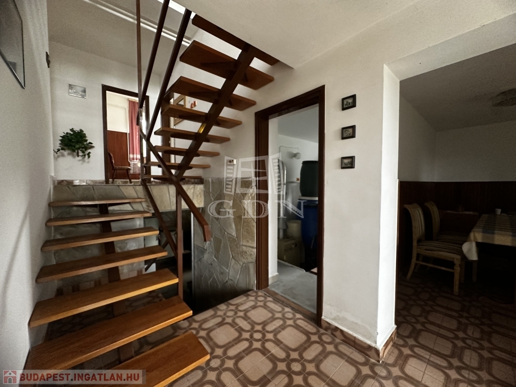 A félszintek között belső lépcsőház készült, fémvázas, nagyon szép állapotú fa lépcsőkkel.
