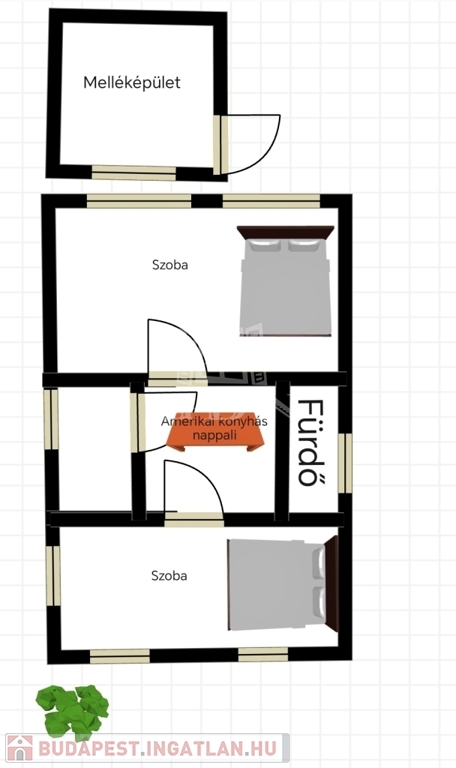 Az egyik szoba utcafronti, a másik a kertre néz, így teljesen két irányba helyezkednek el a házban. Az elkülönülés lehetősége adott akár családoknak, akár bérbe vevő nyaralóknak!