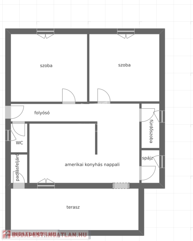 A 2072 m2-es, gondozott, összközműves telken elhelyezkedő 104 m2-es ingatlanban 2 szoba, folyosó, amerikai konyhás nappali, fürdőszoba, különálló illemhely és spájz is található.