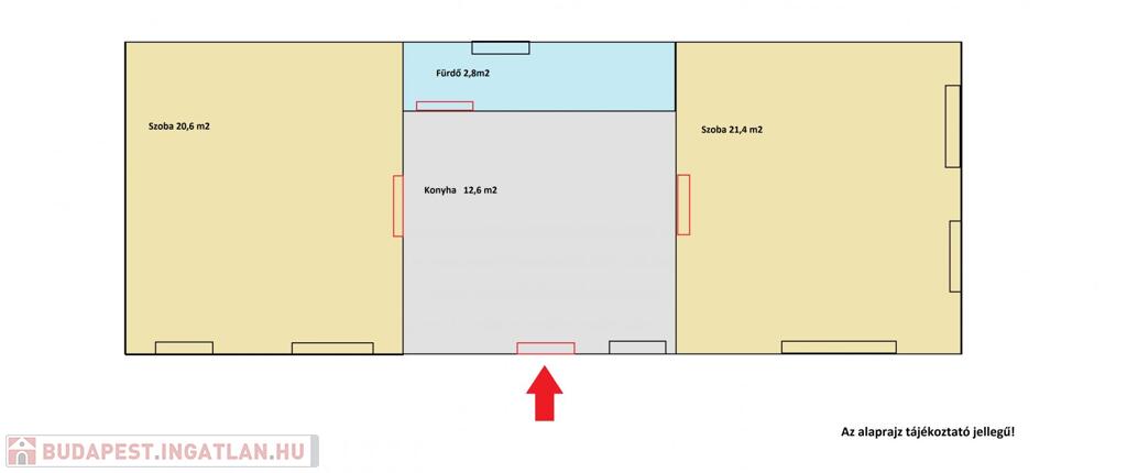 Illetve ha befektetésben, kiadásban gondolkozunk, egy konyhát és fürdőt is kialakíthatunk belőle, a mellette lévő szobát egy ajtóval hozzá nyithatjuk és így 2 db egy szobás lakást kapunk.