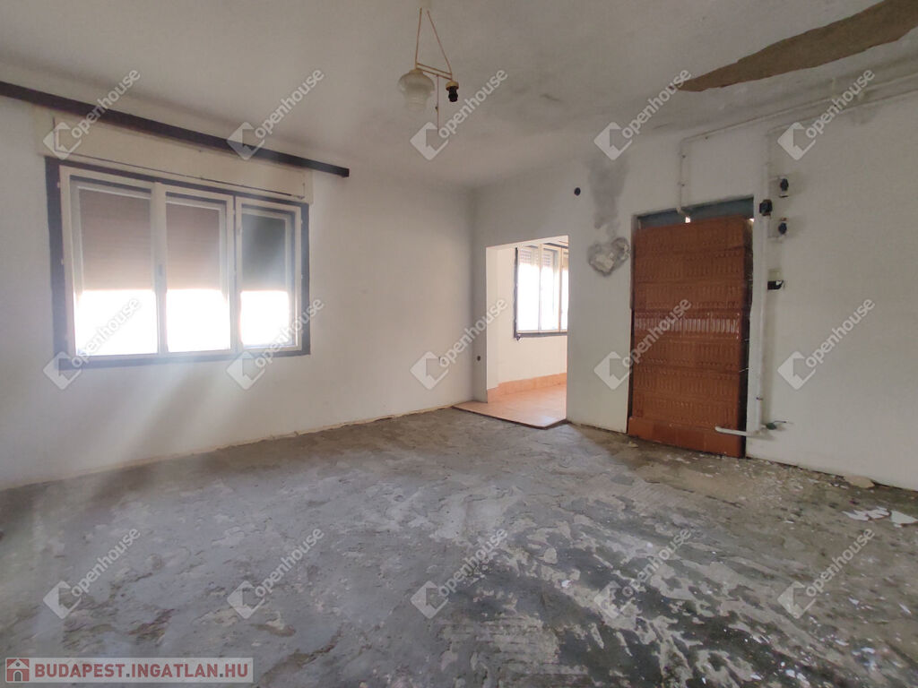 Belső elrendezése jelen kialakításában: előszoba-közlekedő, étkező, konyha, fürdőszoba, két kényelmes méretű szoba.