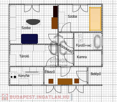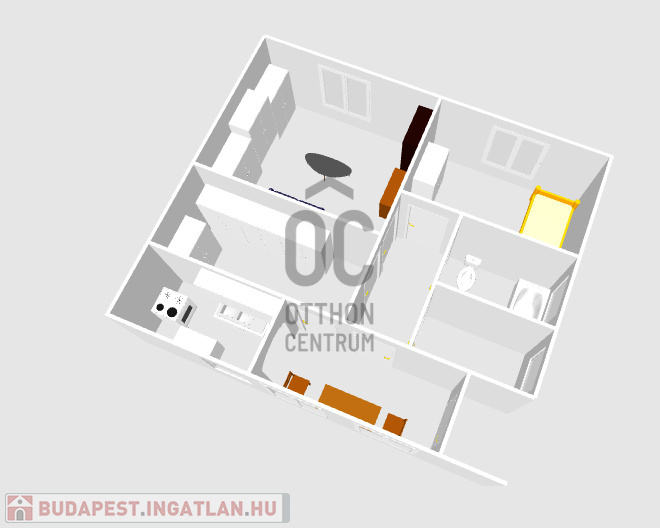 56 négyzetméteres alapterületén gyakorlatilag minden helyiség biztosított, ami elengedhetetlen egy család életéhez.