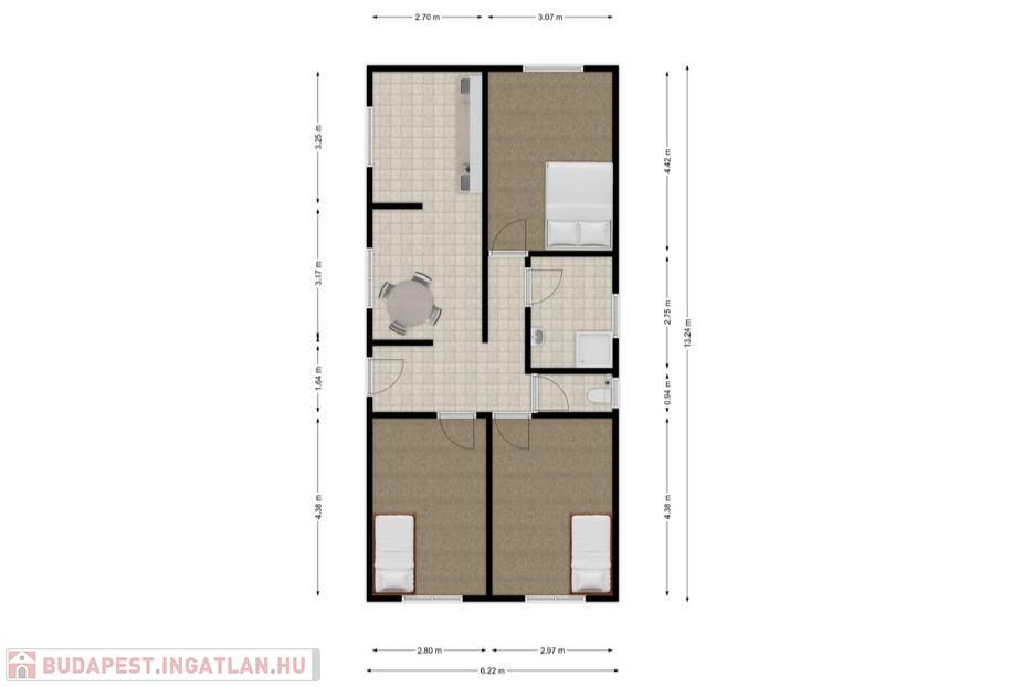 3 külön nyíló hálószoba,