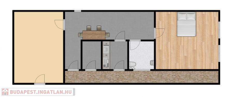 1 tágas hálószoba (plusz egy hálószoba könnyen kialakítható a 26,46 m²-es tárolóból)