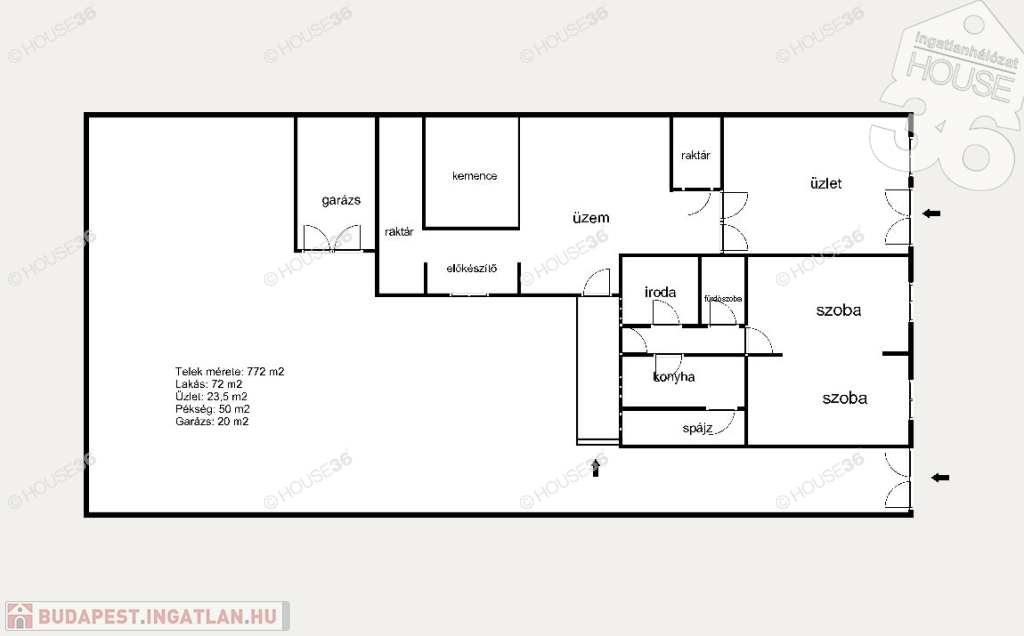 - Pékség: 50 m2 (2 raktár, előkészítő, sütőkemencés helység)