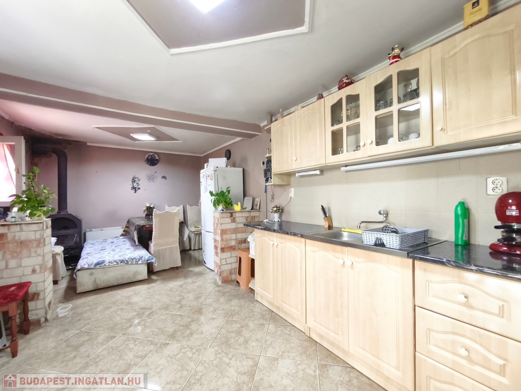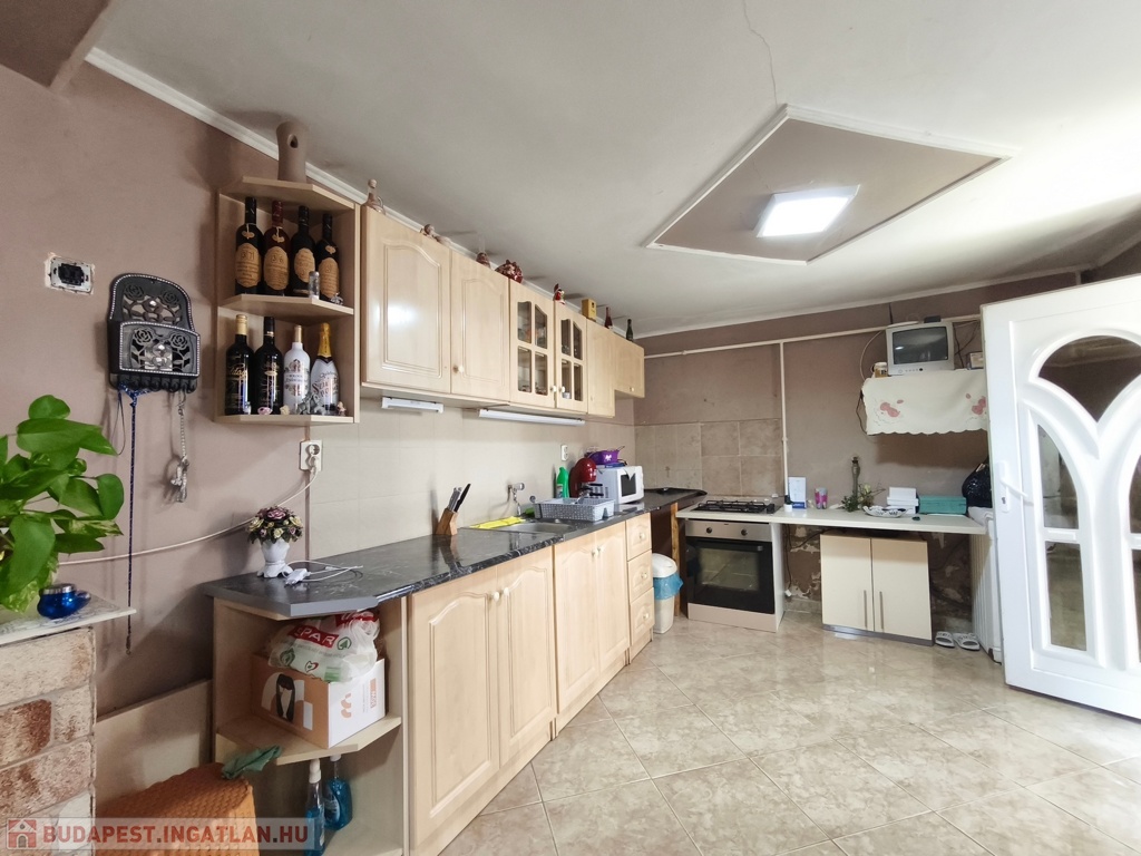 Kiskunhalason a Giorgio dekor közelében eladó egy részben felújított családi ház, 439m2 telekterülettel és 60 m2 + 40 m2 alapterülettel. A ház vegyesfalazatú, amelyben kialakításra került 2 szoba, előszoba és fürdőszoba wc –vel. A konyha étkezővel a melléképületben található. Nyílászárók cserélt, szigetelt műanyag szerkezetűek. Fűtését gázkonvektor biztosítja. Parkolás a zárt udvarban, illetve garázsban lehetséges.
