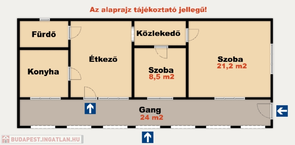 Az ingatlan vegyes falazatú, cseréptetős szerkezetű, elrendezése praktikus és jól kihasználható. Két külön nyíló szoba, étkező, konyha, fürdőszoba és közlekedő került kialakításra. A ház előtt tágas, árnyékos gang húzódik, amely kellemes pihenőhelyet biztosít a mindennapokban.