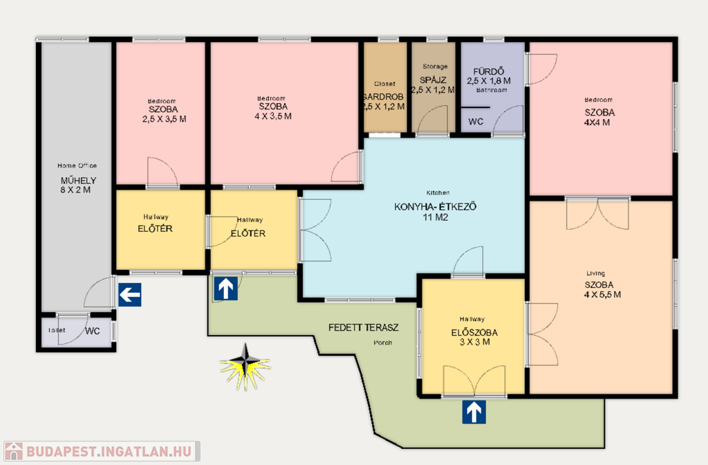 - Szoba 4 db (22 m2, 18 m2, 14 m2, 9 m2)