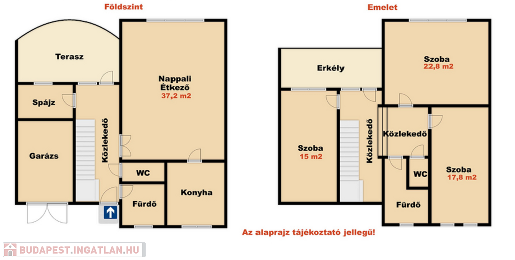 - Szobák: nappali 37m2+ 3 (22,8m2 +15m2 + 17,8m2)