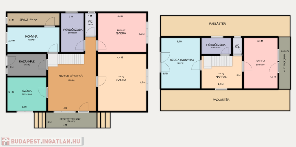 - 3 db hálószoba (10,5 m2, 23,30 m2, 15,40 m2)