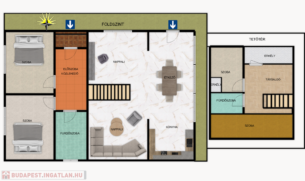 - Szobák: 2 a fsz.-en, 2 az emeleten