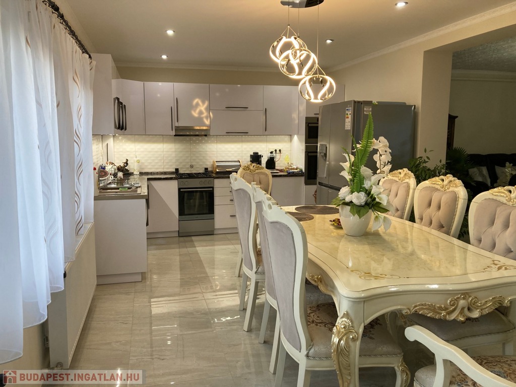 Kiskunhalas a Fazekas Mihály ált. iskola közelében eladó igényes családi ház 465 m2-es telekterületen, 220 m2 lakóterületű, 4 szoba, nagy, világos 40 m2-es amerikai konyhás nappali, 2 fürdőszoba kialakításával.