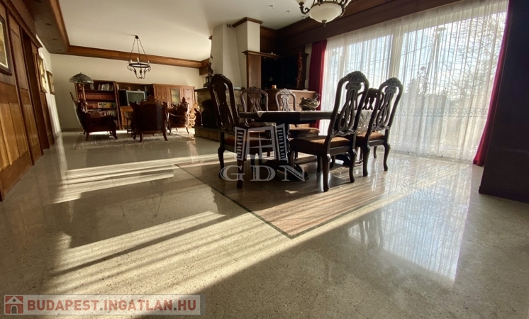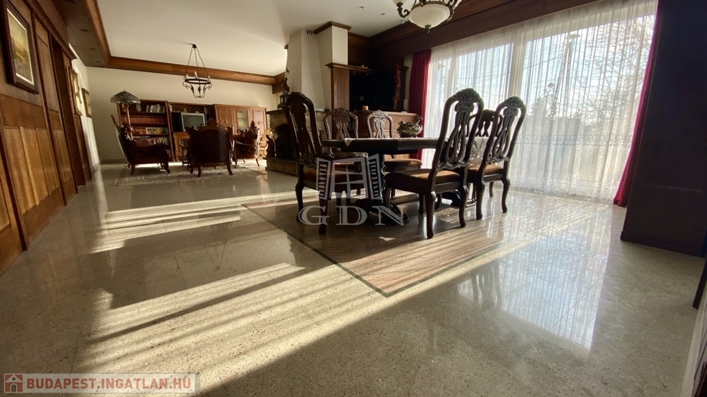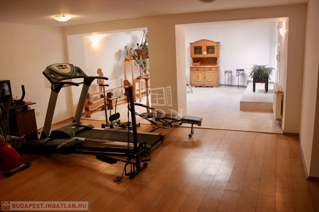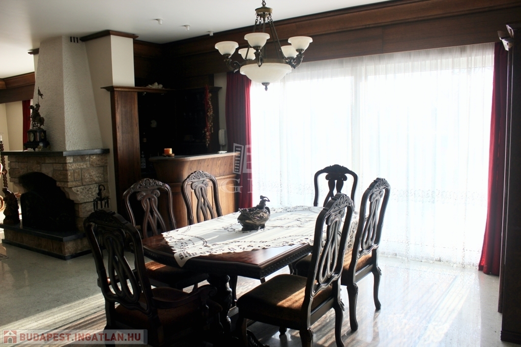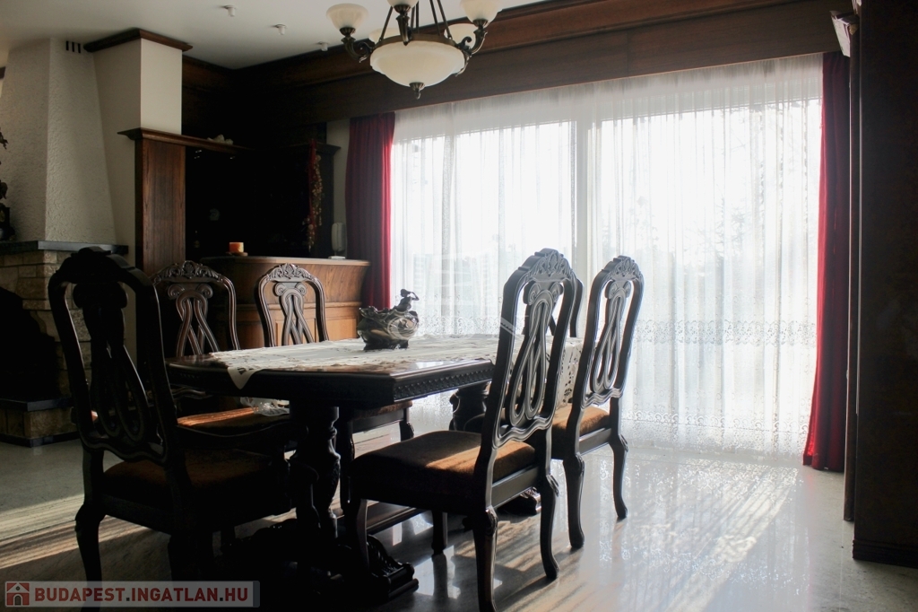 A háromszintes, igényesen megépített és folyamatosan karbantartott ház kialakítása rendkívül praktikus. A földszinten található egy előtér, WC, kamra/tárolóhelyiség, konyha, melyben beépített Miele gépek találhatóak, ezen felül egy étkezővel egybekötött nappali, egy gardrób szoba, fürdőszoba illetve egy hálószoba. Az emeleti lakótérben szintén megtalálható egy nappali rész, két hálószobával egy fürdőszobával és két beépíthető tetőtéri szobával. A szuterén szinten található a műhely, mosókonyha, egy világos télikert, fitness terem, zuhanyzó és külön WC, valamint egy gondosan kialakított wellness részleg szaunával. A ház szobáiból és a teraszról egyaránt szép kilátás nyílik a kertre, amely kellemes, zöld környezetet biztosít a mindennapokhoz.