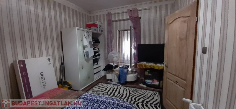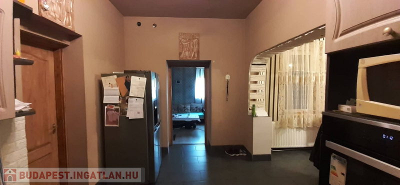 A hátsó lakrész( 49nm) egybe van építve a fő résszel, de teljesen külön bejárattal rendelkezik. Ott találunk egy hosszú folyosót, innen nyílik egy 18 nm-es konyha-nappali, és egy 14 nm-es szoba. A nappaliból jutunk a 4 nm-es fürdőszobába. A folyosóról nyílik az egész épület alatt húzódó pince. Ez a lakrész, bár laknak benne, de a fürdőn kívül még befejezésre vár.