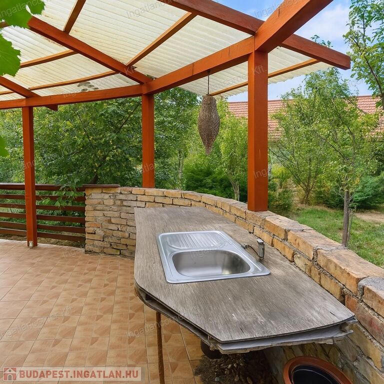A belső tér praktikus és világos: 31 m²-es amerikai konyhás nappali, két hálószoba, valamint bővítési lehetőség. A kert rendezett, fúrt kúttal, termő gyümölcsfákkal és szőlőlugasokkal, így ideális választás lehet kertészkedéshez, gazdálkodáshoz, vagy akár vállalkozási célokra is.