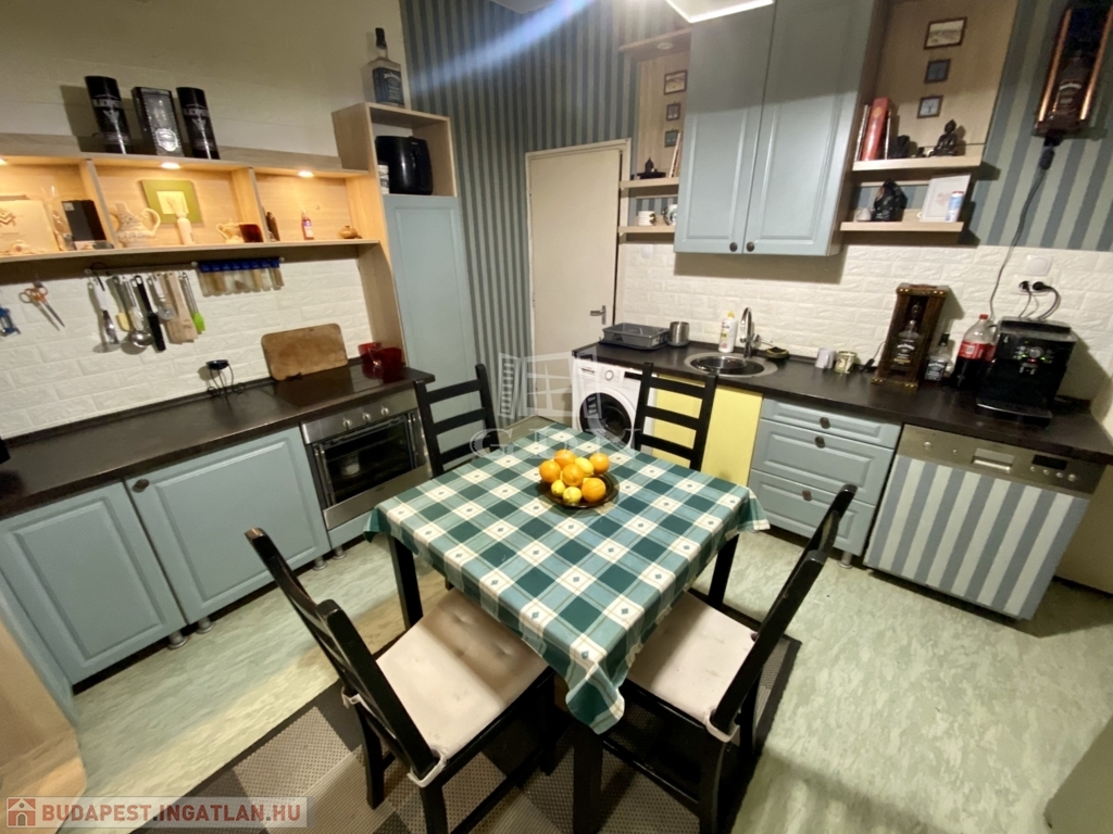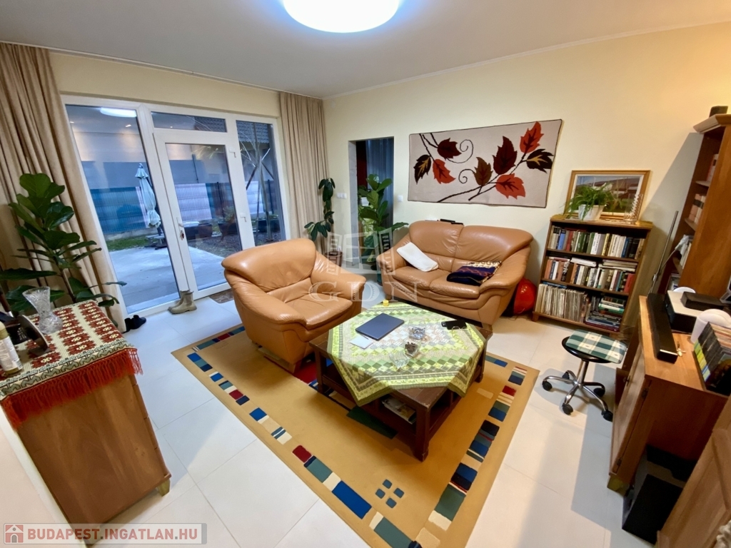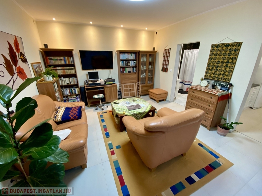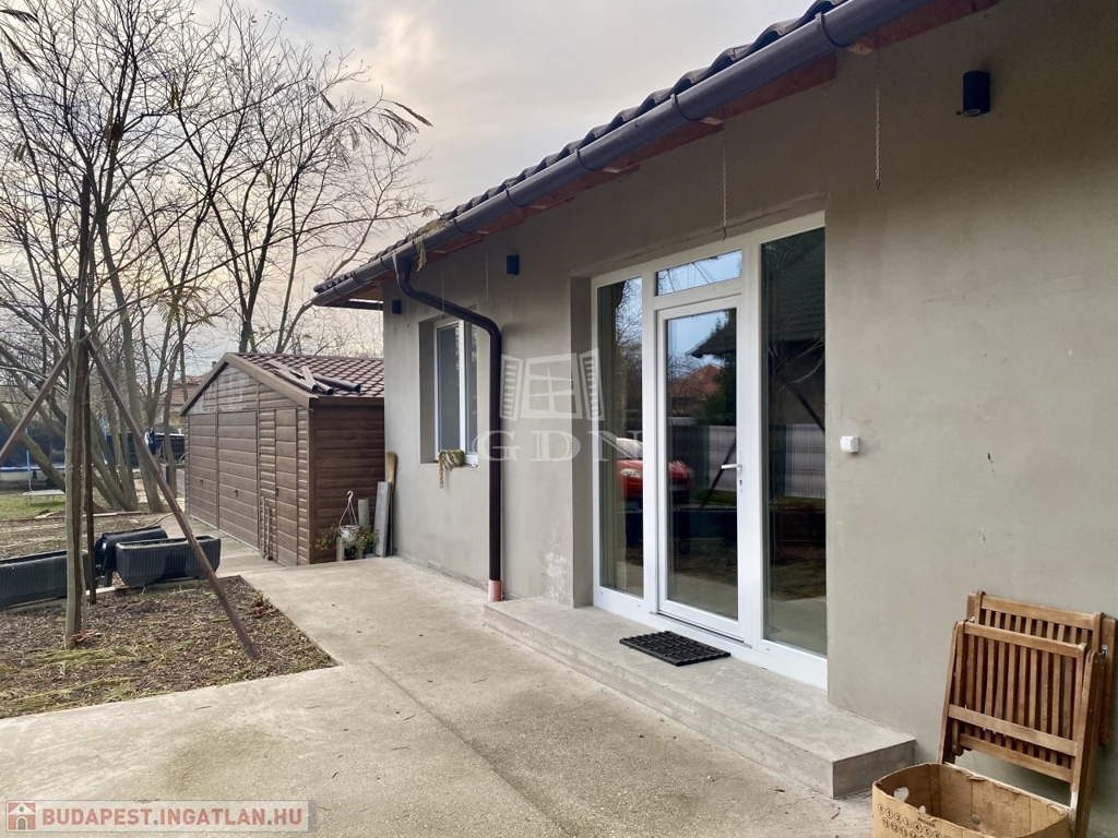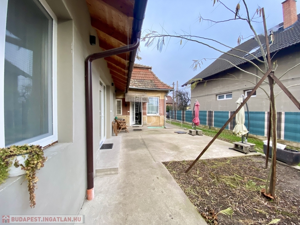 A hátsó, 49,3 m²-es épület teljeskörűen felújított, modern kialakítású. Ytong falazata kívül 10 cm hőszigetelést kapott, a tetőn pedig 30 cm szigetelés gondoskodik a kiváló energiahatékonyságról. A kényelmet padlófűtés és klímával történő fűtési lehetőség biztosítja, így a rezsiköltségek rendkívül kedvezőek lehetnek.