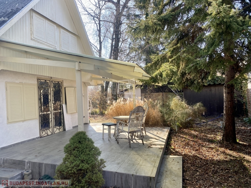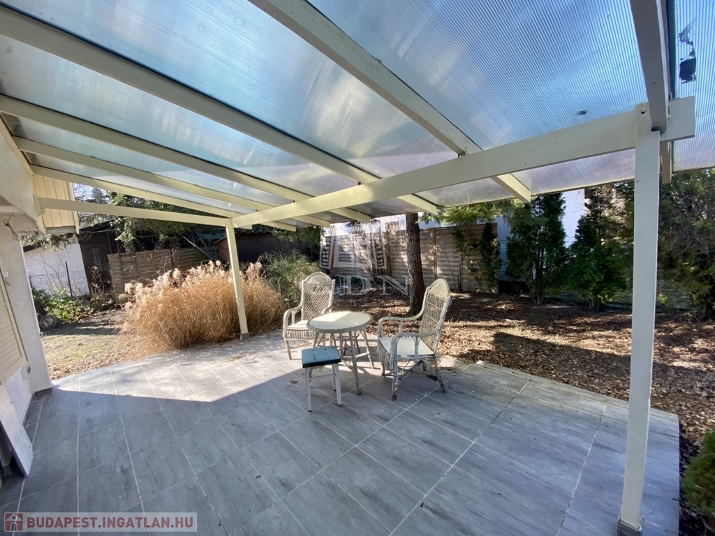 A 370 m²-es telken elhelyezkedő ingatlan alapterülete 78 m², melyhez egy 20 m²-es fedett, kertre néző terasz kapcsolódik — van hogy a reggeli kávét mókusok társaságában élvezheti az ingatlan gazdája.
