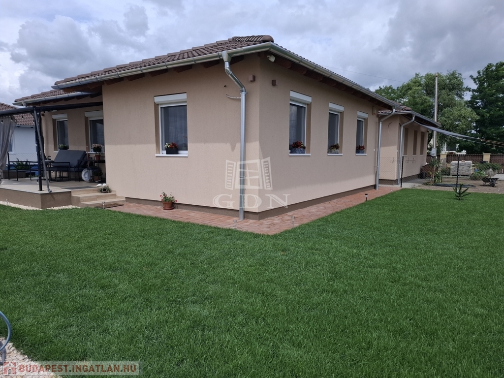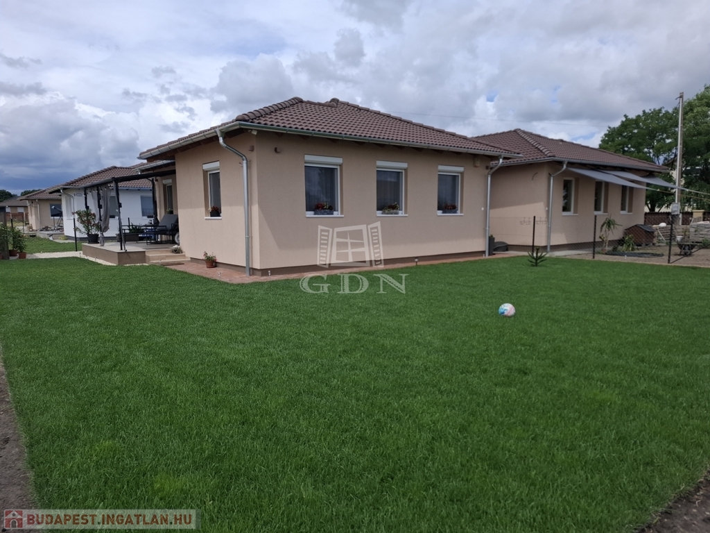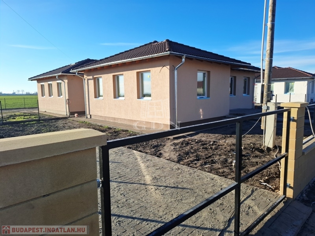Kiskunlacháza új építésű házai között a szomszédtól fedett kerti tárolóval elkülönített ikerház hátsó "b" lakása eladó.