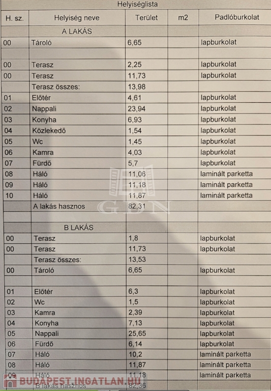 A 3 hálószobás ingatlanok nettó alapterülete: 83 nm + tároló: 6,65nm + terasz: 12,00 nm.
