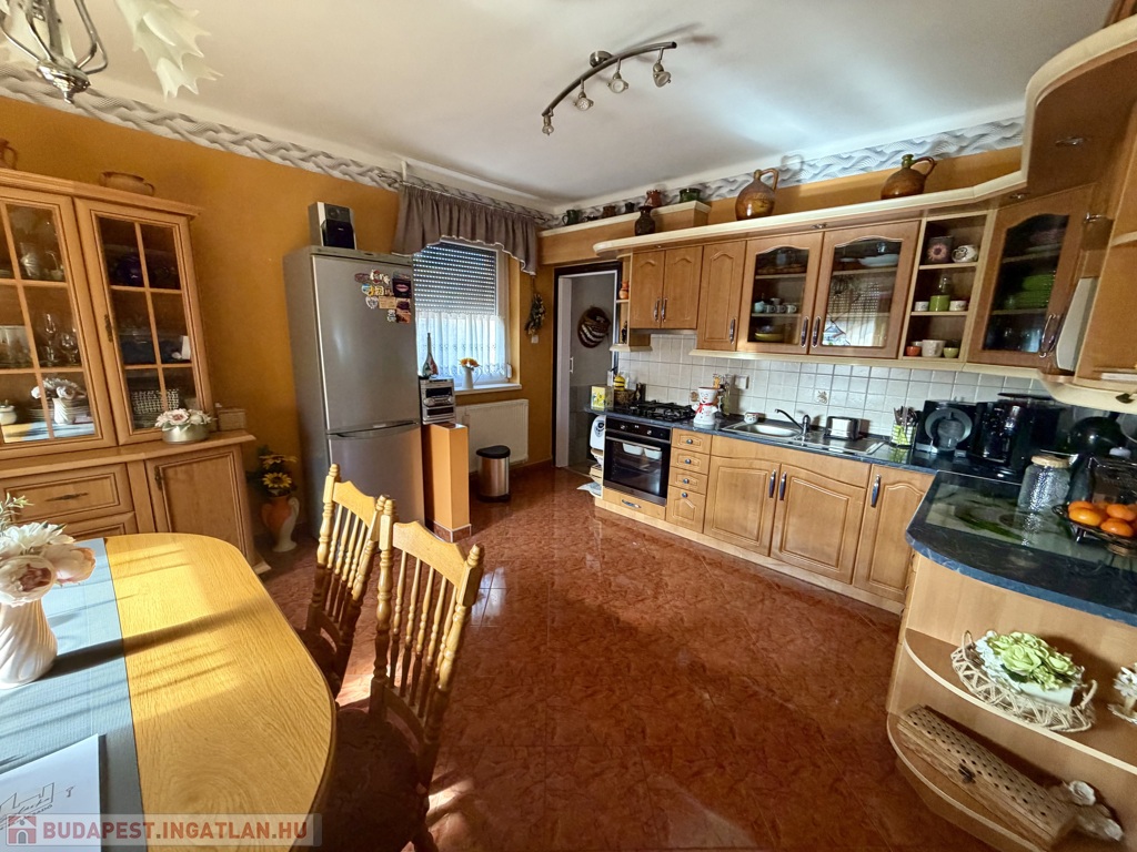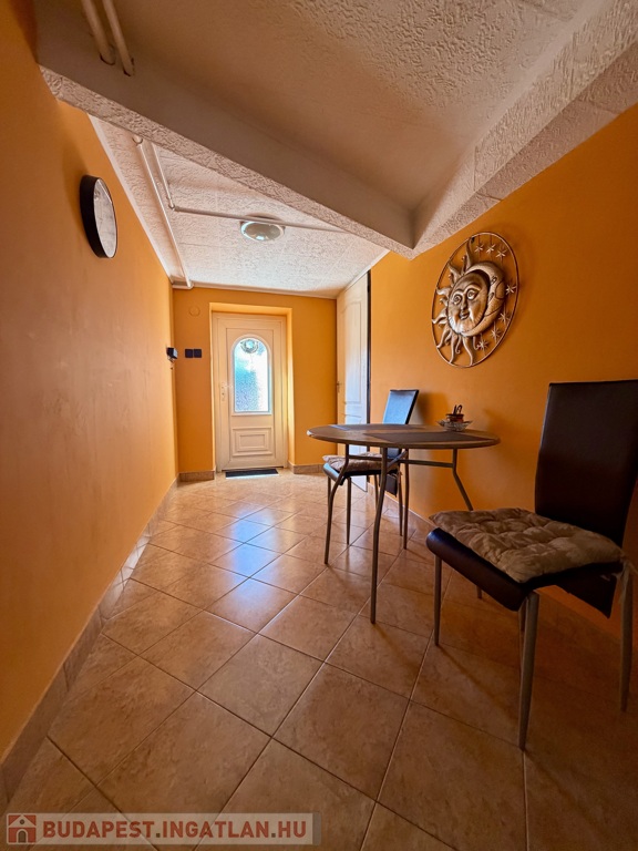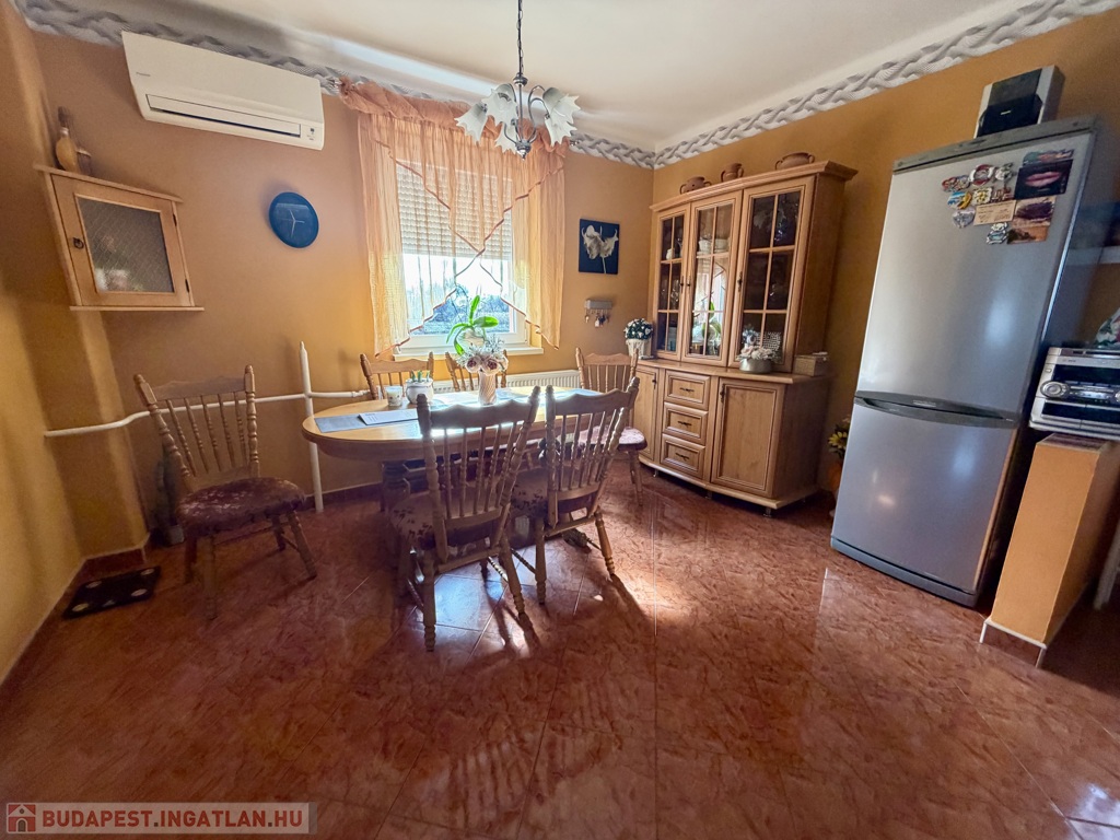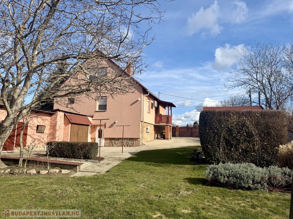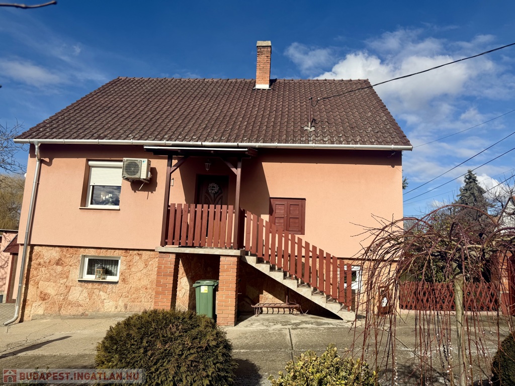 Az 1990-ben épült, szigetelt téglaház szintenként 75 m²-es kialakítással épült, a beépített tetőtérrel együtt összesen nettó 185 m² életteret kínál. A térszervezés kifejezetten jól működik nagyobb család esetén is.