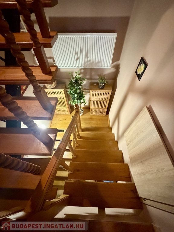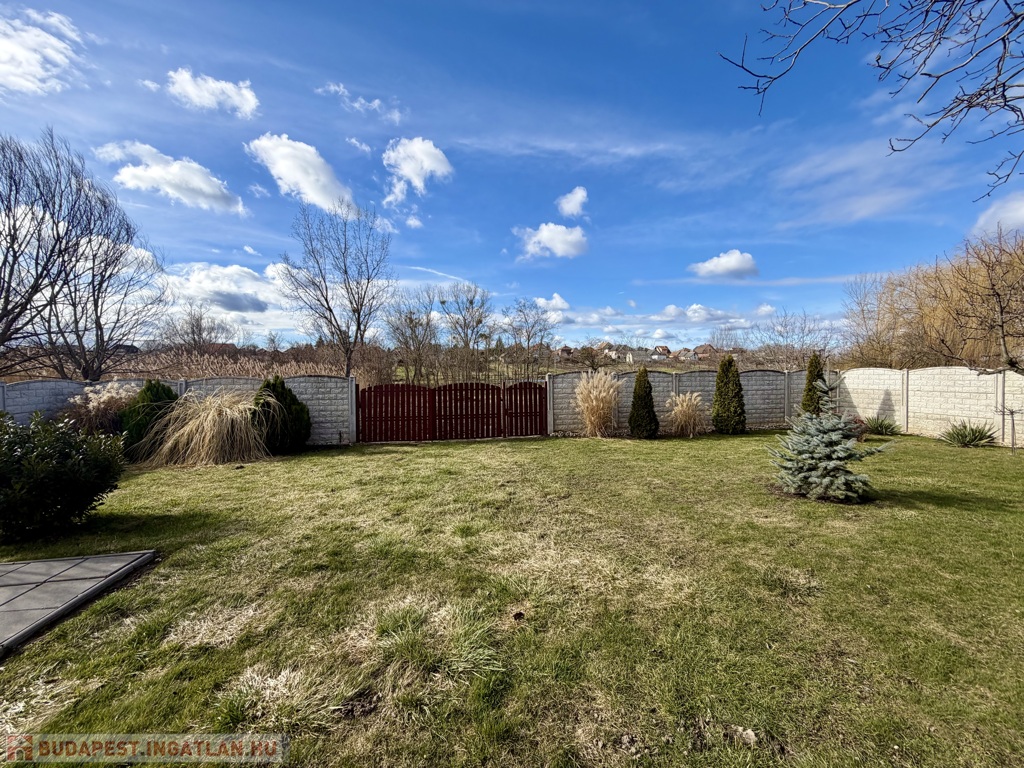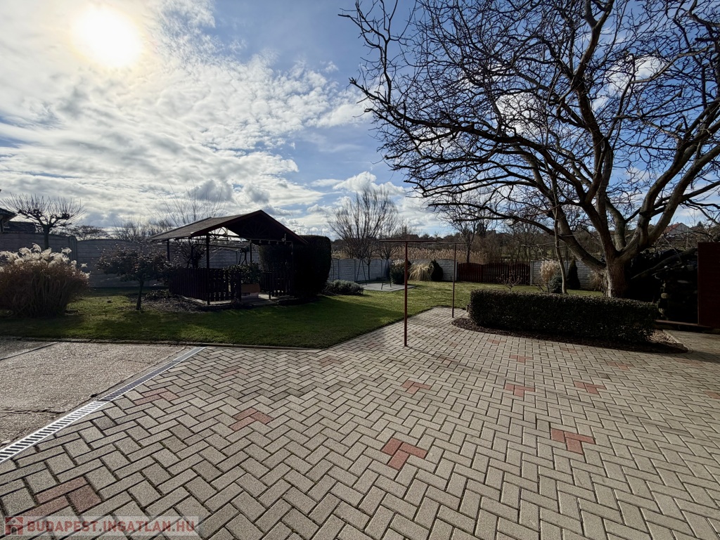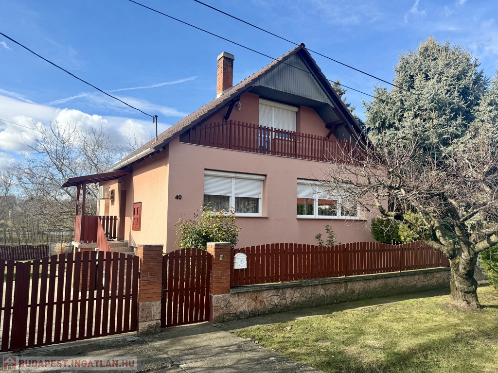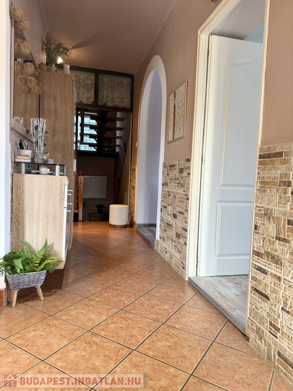 Az 1990-ben épült, szigetelt téglaház szintenként 75 m²-es kialakítással épült, a beépített tetőtérrel együtt összesen nettó 185 m² életteret kínál. A térszervezés kifejezetten jól működik nagyobb család esetén is.