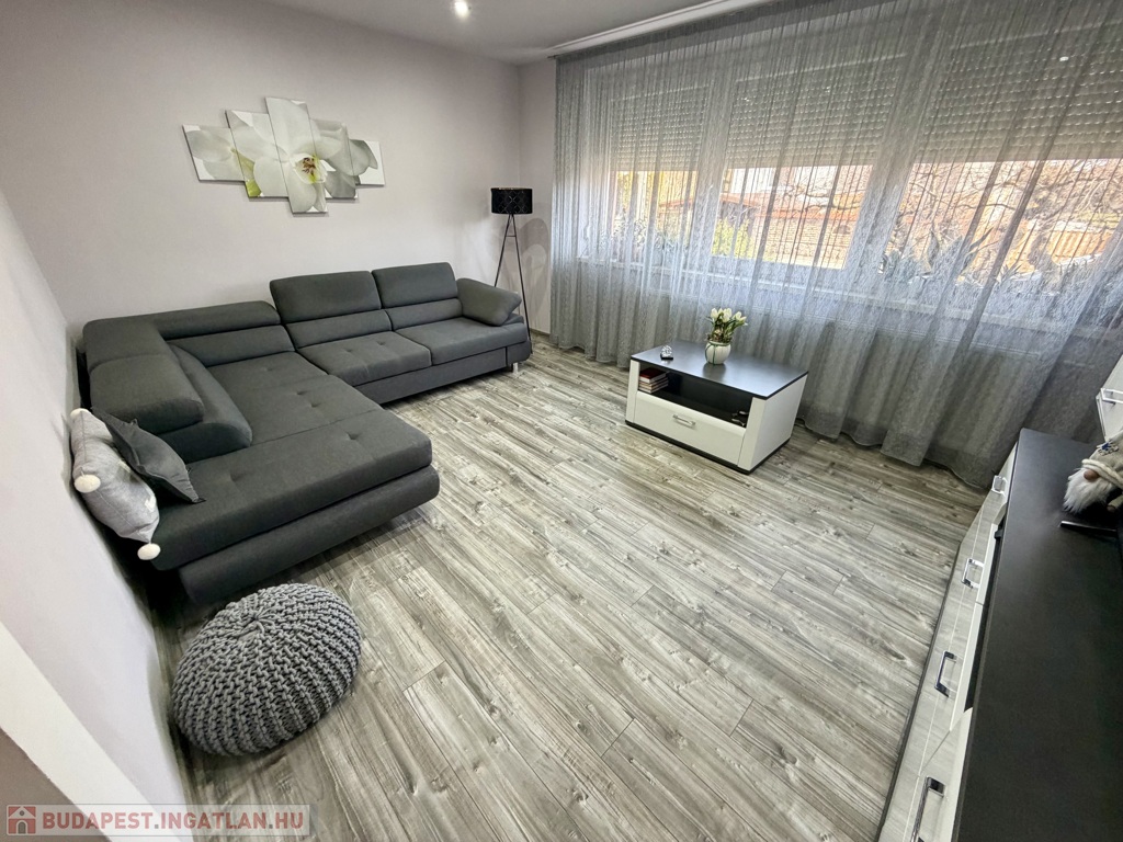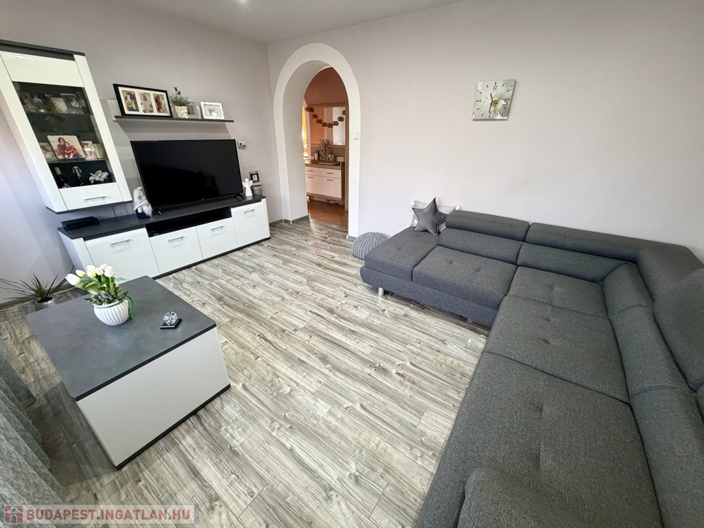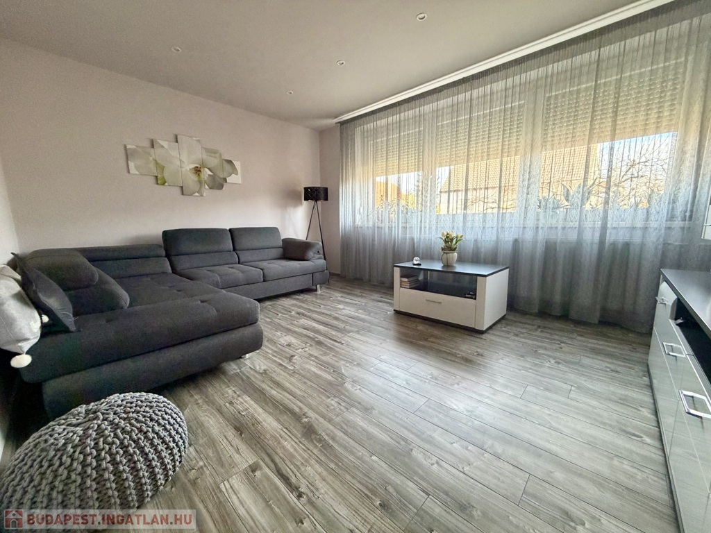 A földszinten tágas, napfényes konyha-étkező fogad, két külön nyíló, felújított szobával, felújított fürdőszobával és külön WC-vel.