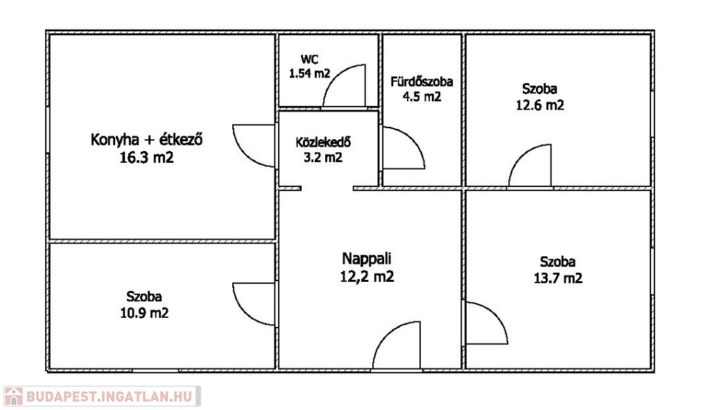 Kellemes, élhető elosztású. Nappali + 3 szoba lett kialakítva. WC és fürdőszoba külön helyiségben található.