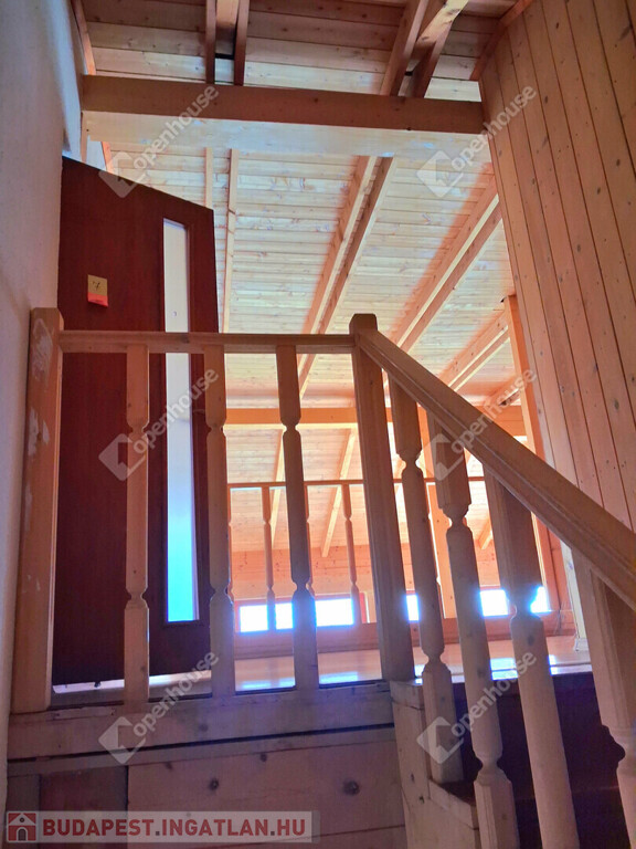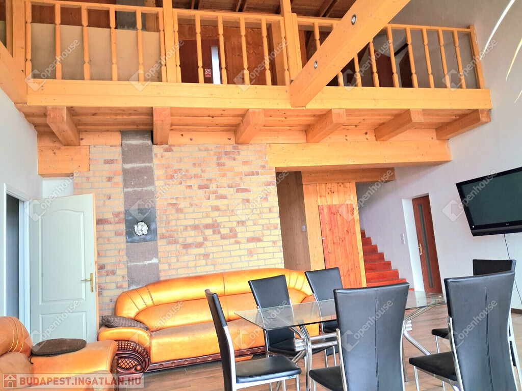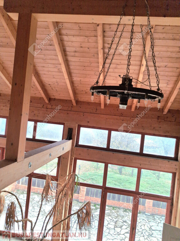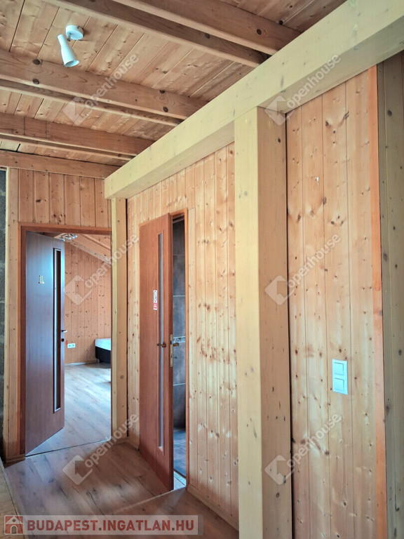 Az egész épületben a fa meleg hangulata dominál. Fölszinten és az emeleten látszó gerendák, a fürdőszobában minőségi burkolat,az egyedi készítésű fa beltéri ajtók, mind melegséget árasztanak.Minden szegletéből a nyugalom, a kényelem és a kifinomultság sugárzik.