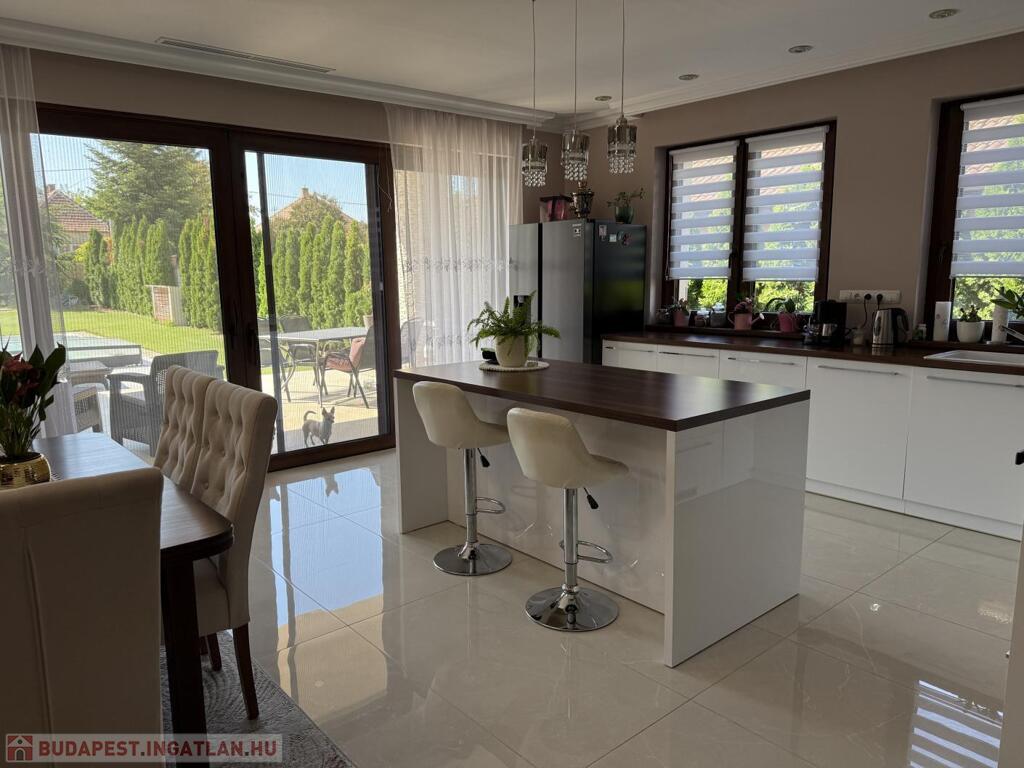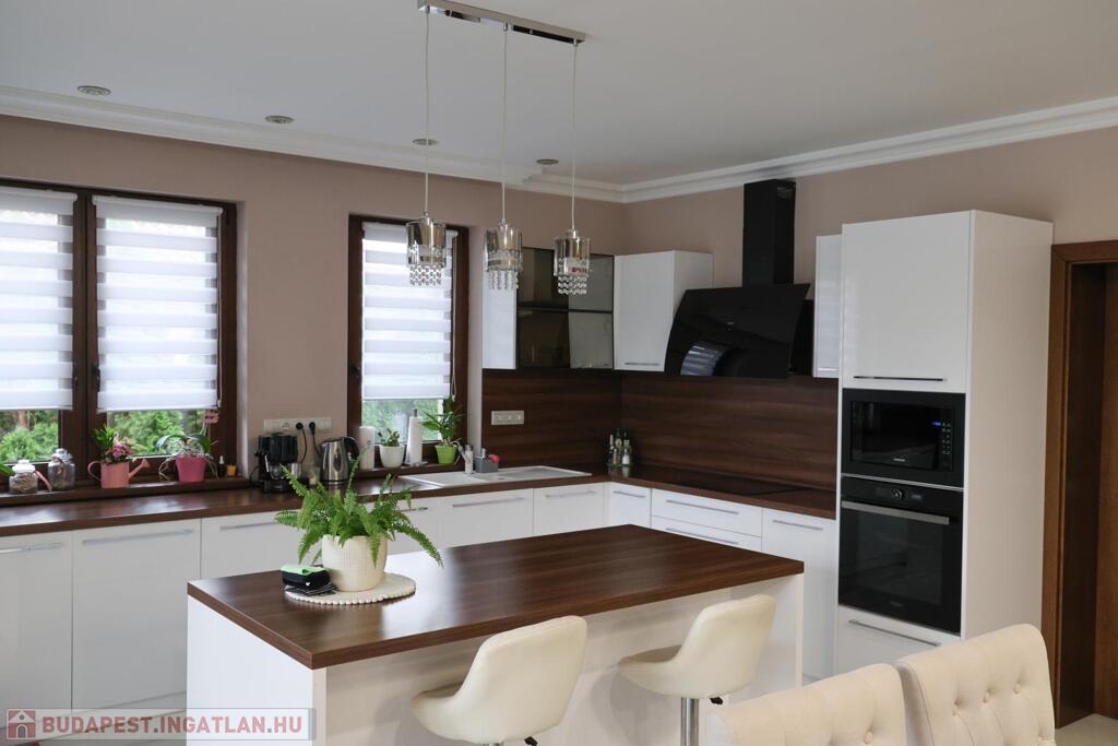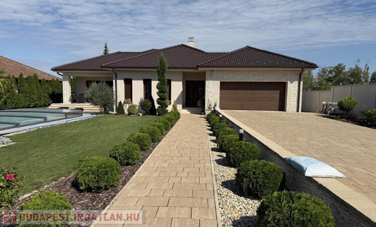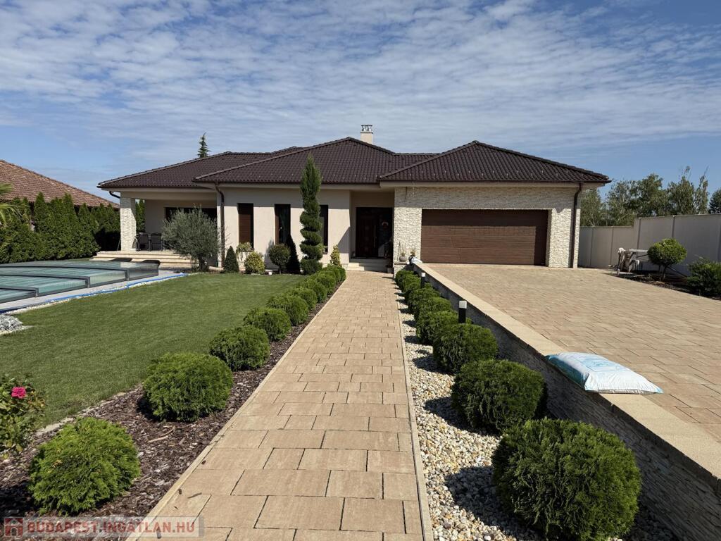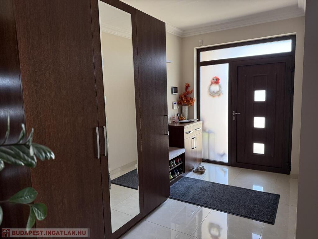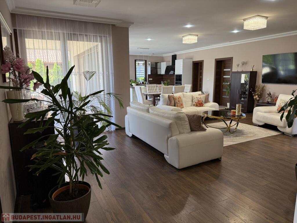 Komárom egyik legkedveltebb, csendes kertvárosi övezetében kínáljuk eladásra ezt a minden részletében tökéletesen megalkotott, 2020-ban épült luxus lakóházat. Az ingatlan egy 1 433 m²-es, gondosan parkosított telken helyezkedik el, és a modern építészet, a természet közelsége, valamint a kompromisszummentes minőség tökéletes harmóniáját képviseli. Ez az otthon nem csupán egy ház, hanem egy életstílus: elegancia, kényelem és privát luxus egyben.