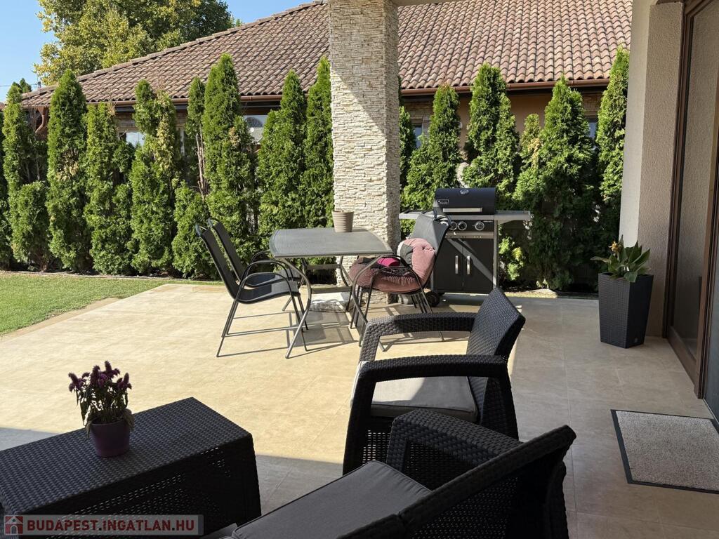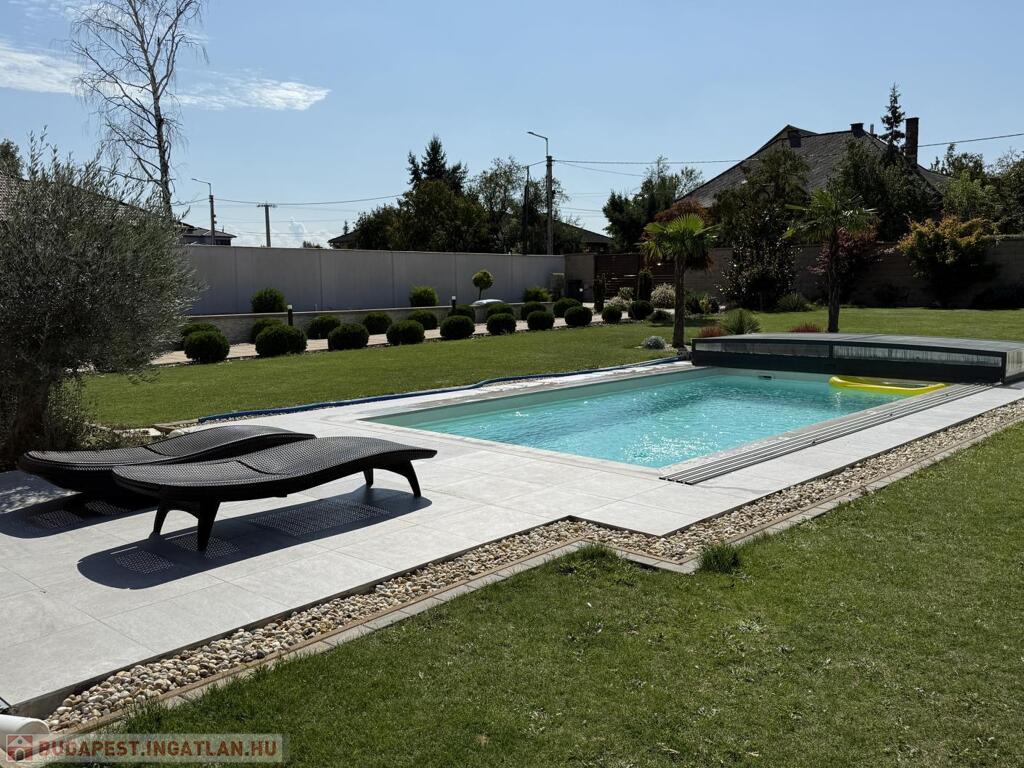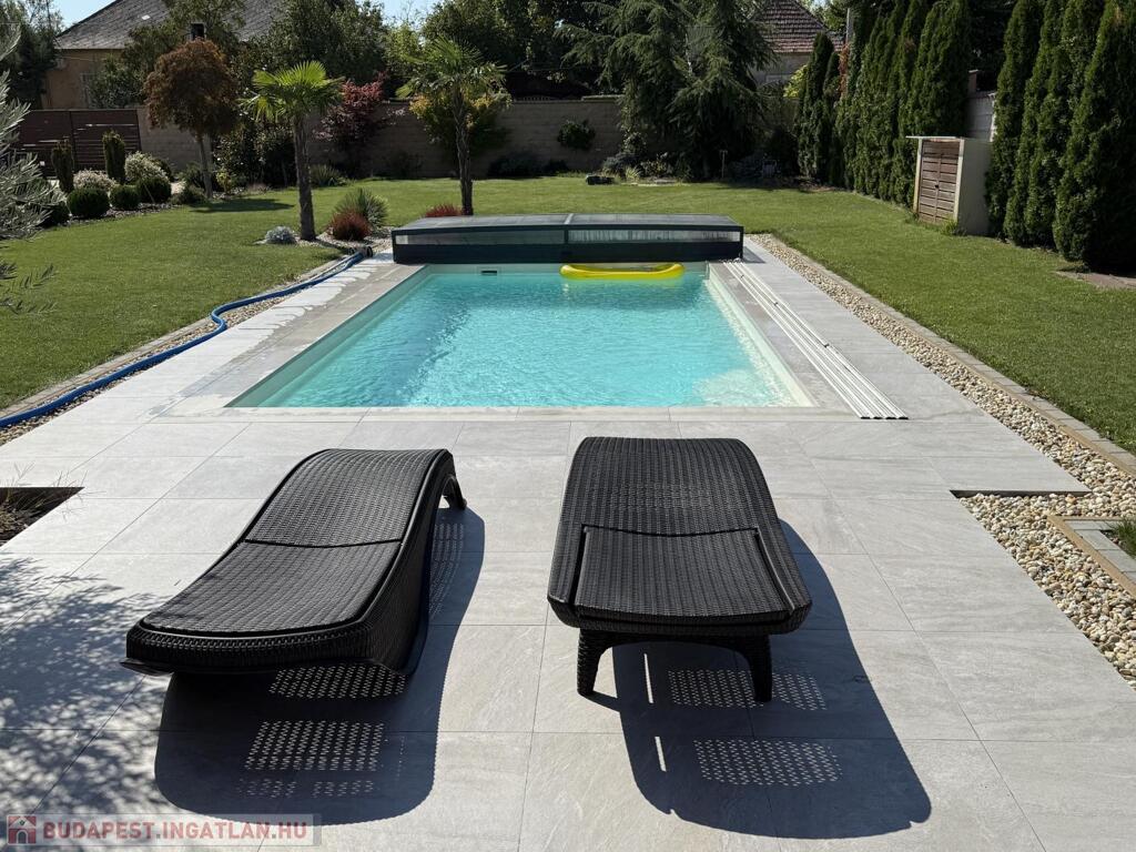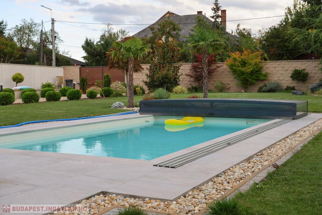 A telek minden négyzetmétere a prémium minőséget tükrözi: automata öntözőrendszerrel kiépített, kertész által megálmodott zöld környezet, gondosan válogatott növények, valamint a süllyesztett, fedett és fűtött medence teremtik meg a mindennapi nyaralás élményét. A kerthez kapcsolódó nagy, fedett terasz (18 m2) ideális helyszín meghitt családi vacsorákhoz vagy exkluzív baráti összejövetelekhez.