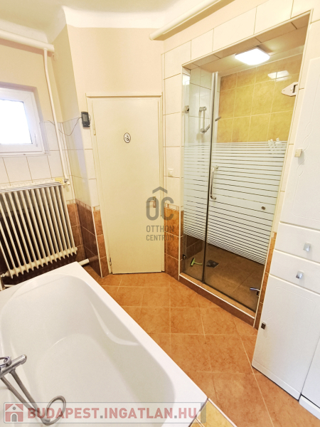 A fürdőszobán belül kád és tusoló, illetve külön WC kapott helyet.