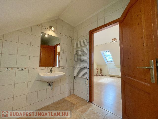 Kialakítása szerint nappali és két hálószoba, étkező, konyha, kamra, fürdőszoba (amely káddal és zuhanyzóval felszerelt) és külön mellékhelyiség található. A dél-keleti tájolású szobák lakóterei ideálisak lehetnek a mindennapi életvitel számára, a tágasságuk pedig tovább fokozhatják a kellemes lakóélményt. A konyhában Fagor beépített konyhagépek (elektromos sütő, mosogatógép, gáz főzőlap) kerültek beszerelésre. Az étkezőből nyílik a lépcsőház, amely zárható, műanyag nyílászáróval felszerelt, a lépcsőház az épület hátsó bejárati ajtaján is megközelíthető ezáltal privát teret biztosít a tetőtéri szinten lakóknak.