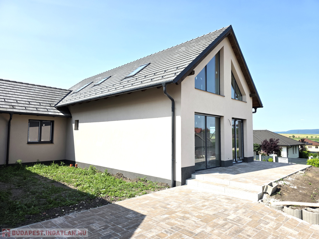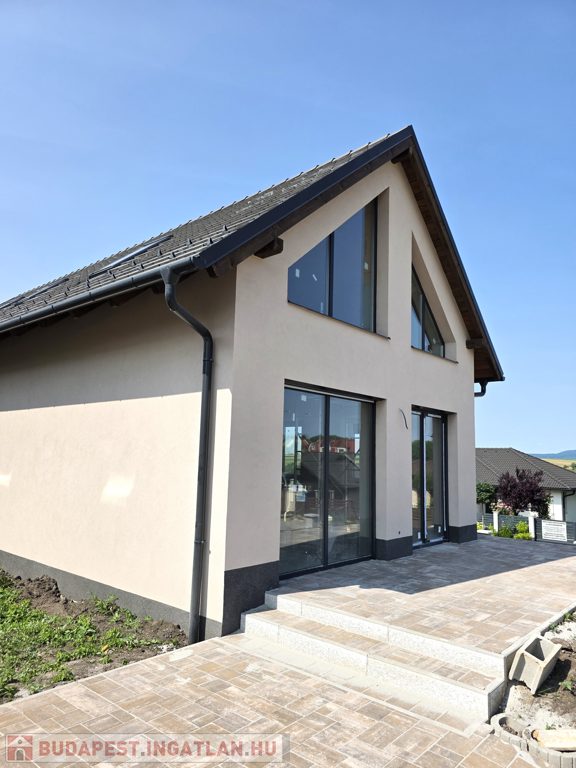 Az emeleten pedig egy nagyszoba és fürdőszoba található. A ház minden helyisége világos, napfényes. Az ingatlan falazata 44-es xtherm rapid okostégla hőszigetelő vakolattal. A nyílászárók 3 rétegű ablakok, elektromos redőnnyel és szúnyoghálóval ellátva.