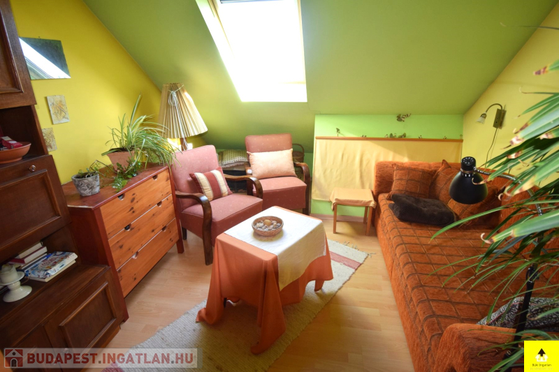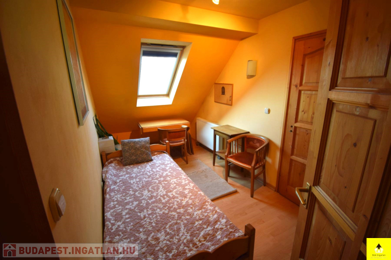 A harmadik lakás a tetőtérben található, melyet a kapuszínből szintén külön bejárattal lehet megközelíteni. Itt 2 kisebb szoba, egy konyha étkezővel, egy fürdőszoba és egy külön wc található.
