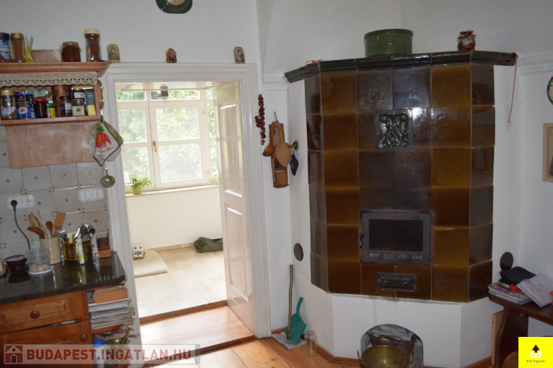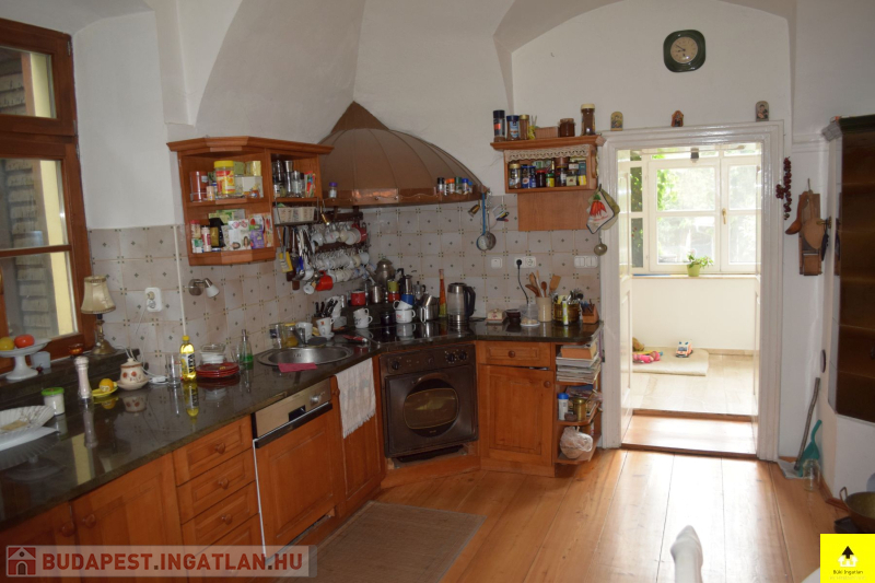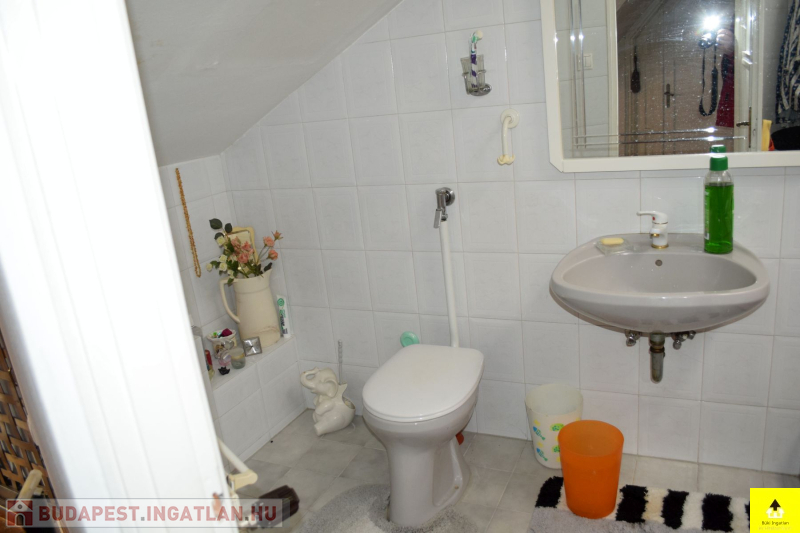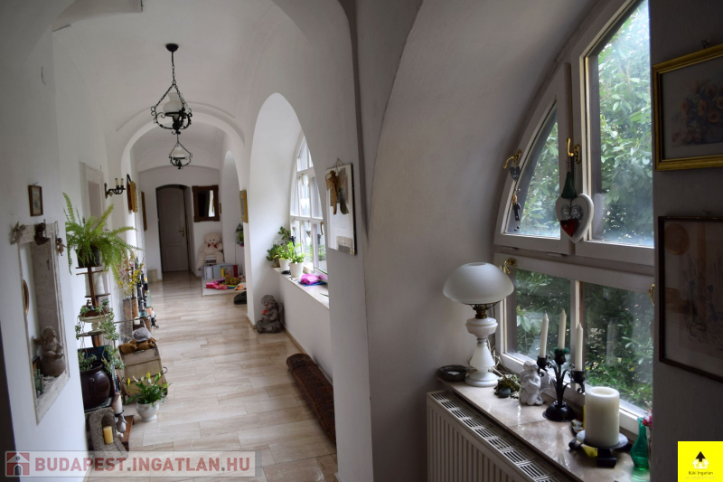 A főbejárati folyosó 13 m2. Innen közelíthető meg a felső szint, ahol a 70 m2 lakás található és szintén innen lehet lemenni az ingatlan szép állapotú és egyedi hangulatú 141 m2-es pincéjébe.
