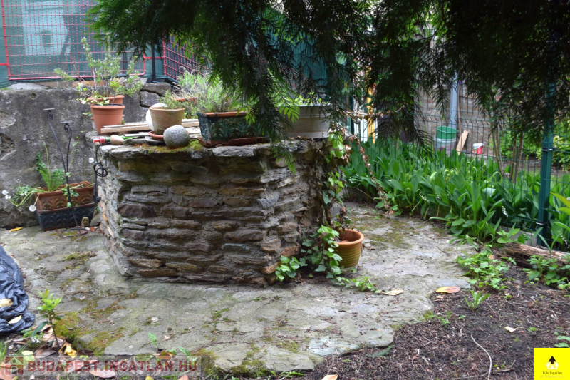 Az ingatlanhoz tartozó 523 m2-es parkosított kertben található egy kút. A 2010 évben történt felújítás során az udvarba építettek egy garázst, melyből közvetlenül a házba is be lehet jutni.